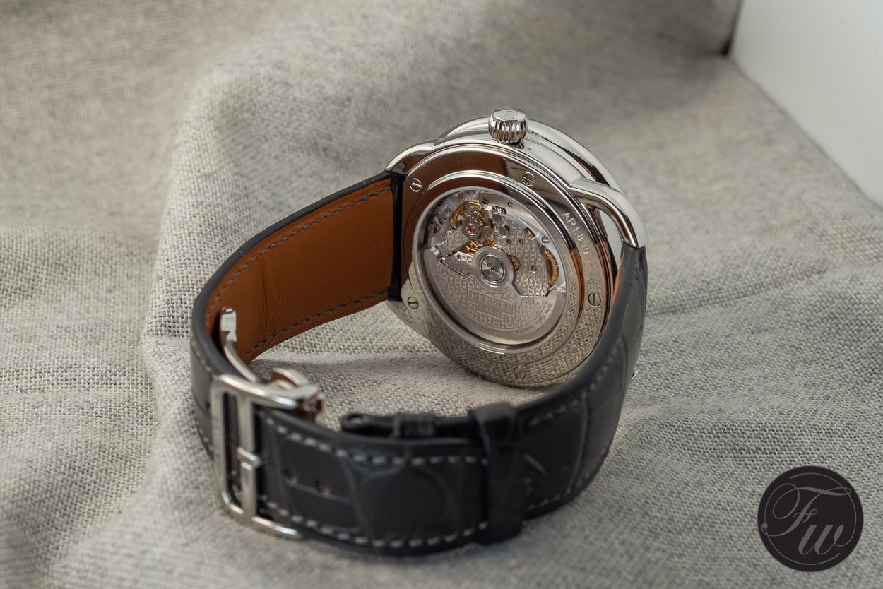Quite a surprise, this Hermès Arceau L’heure de la Lune! And to be dead honest, I did forget about it completely until I gave this overview of 10 best dress watches of 2019 a proper thought. Without expecting too much when walking in the Hermes booth during last year’s SIHH (it is always in French, the presentations are slightly towards a very artistic (also: vague) side and not really aimed at us. However, and a big, however, the Arceau L’heure de la Lune was one of the highlights of the show. Available in two versions, one with this meteorite dial (see pictures) and one with aventurine.