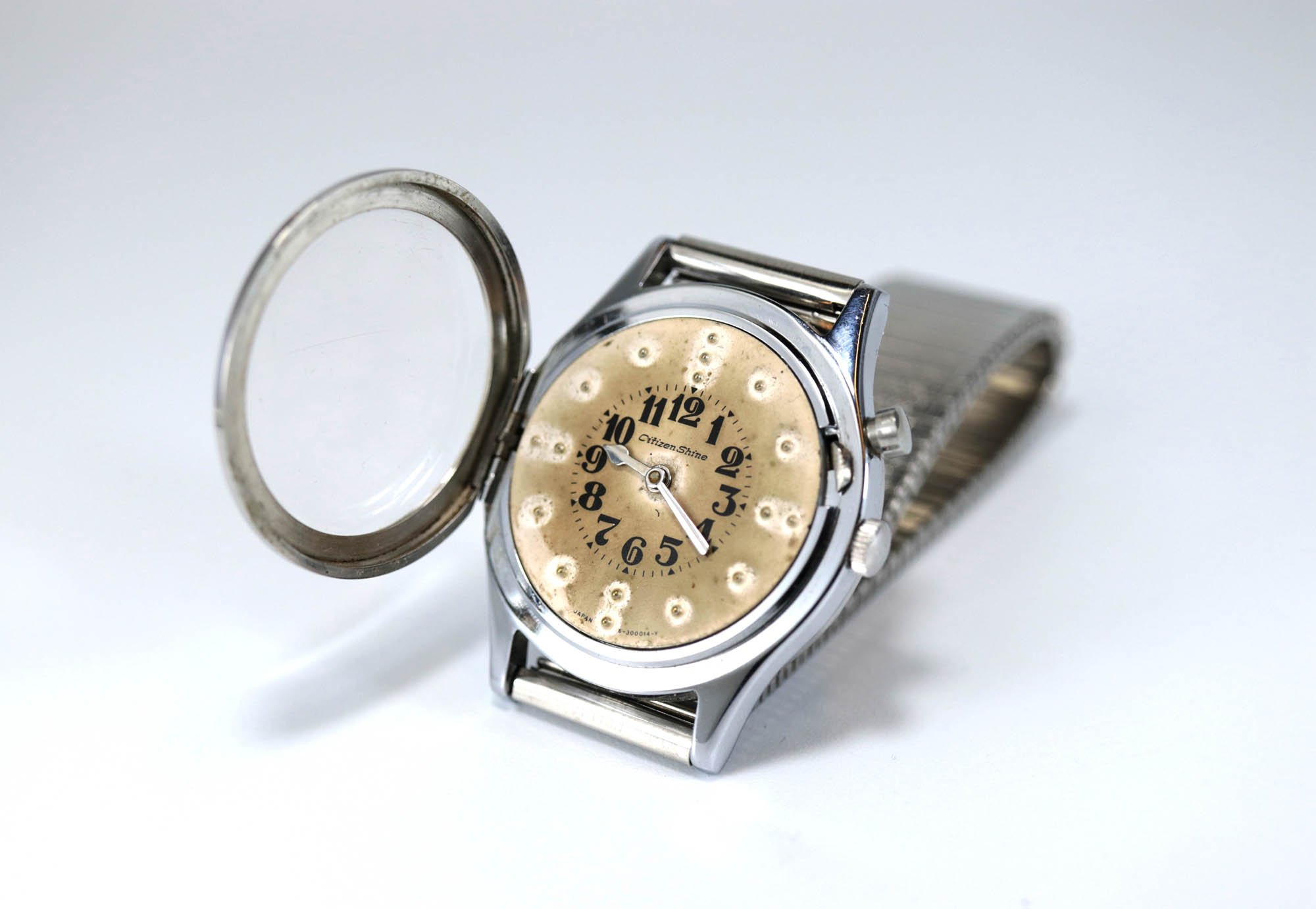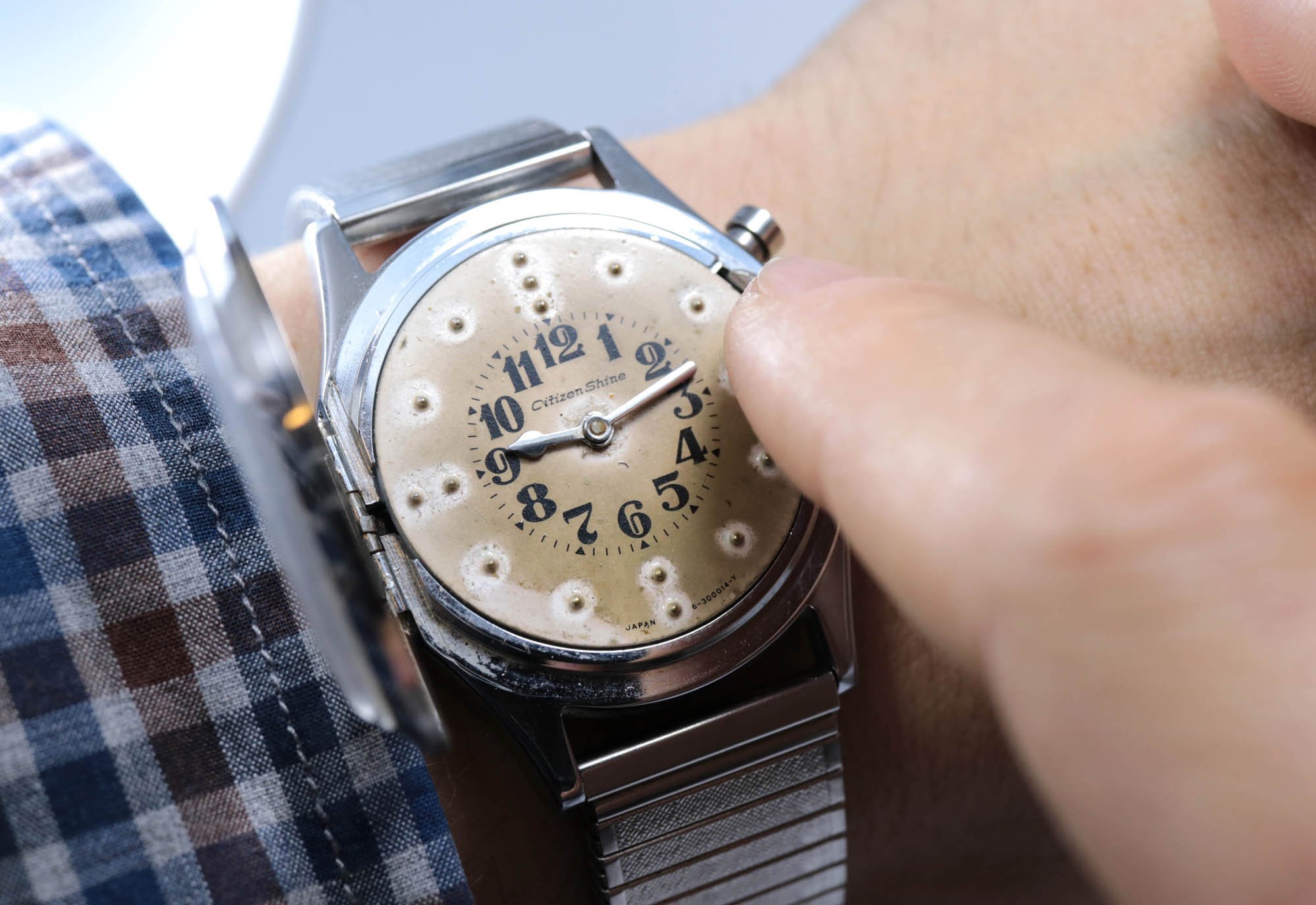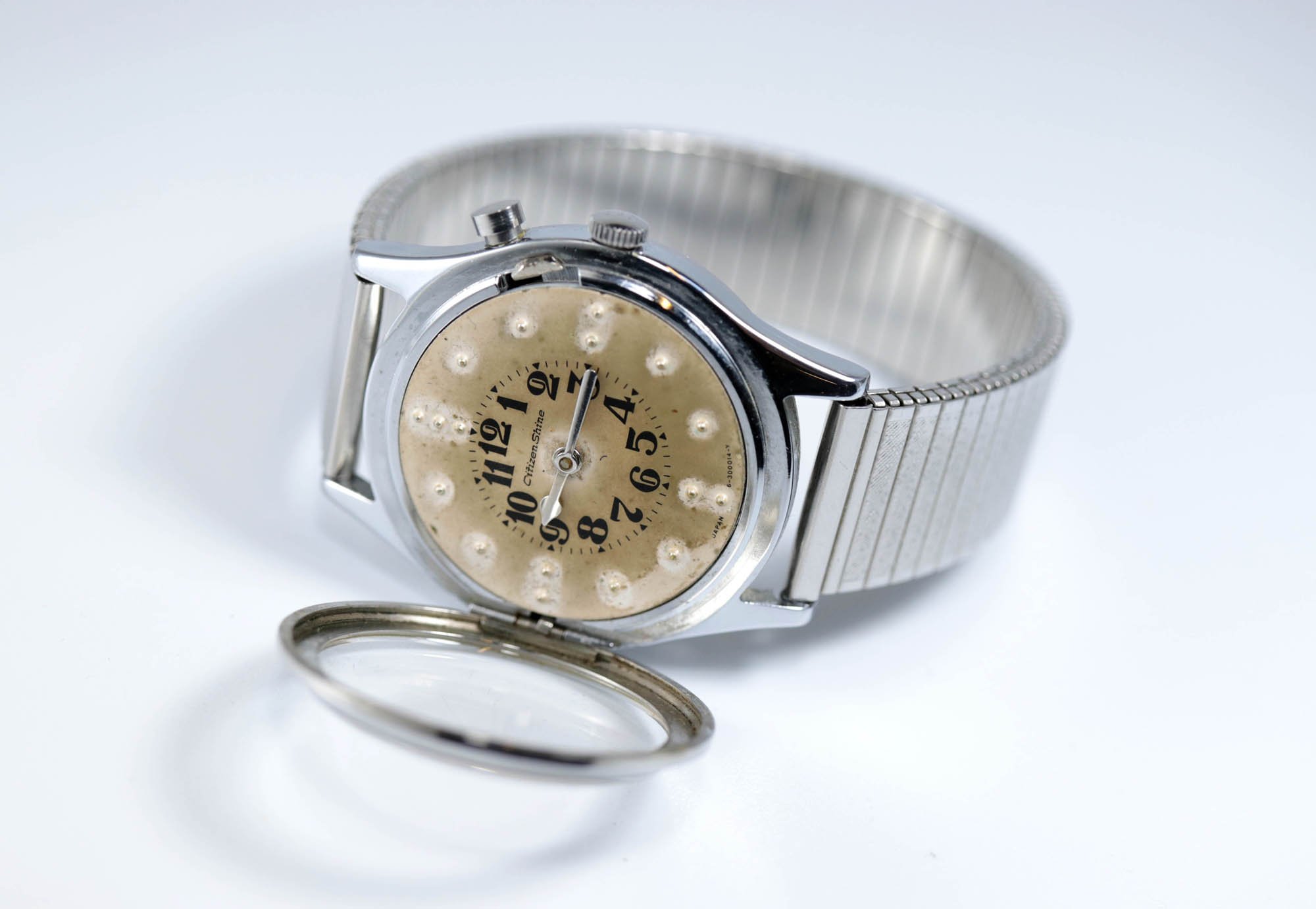 Where some people may see just dirt, sweat or dust glued to the dial, I see the most honest and natural patina humans could ever create. While some collectors are up for hunting complications, there isn’t one to be found here. Citizen Shine’s true purpose is to make reading time anything but complicated. While one would laugh to call a watch with no advanced protection from impacts, water or magnetic fields a tool watch, I dare say are few tougher tools than the Citizen Shine. Am I mad? No. Unroll your watch sleeve, take out any of your vintage watches, put the crystal down and start rumbling around the dial and hands with your forefinger. And do it again and again throughout the day. Because that’s what blind people have done with the Citizen Shine since the 60’s.