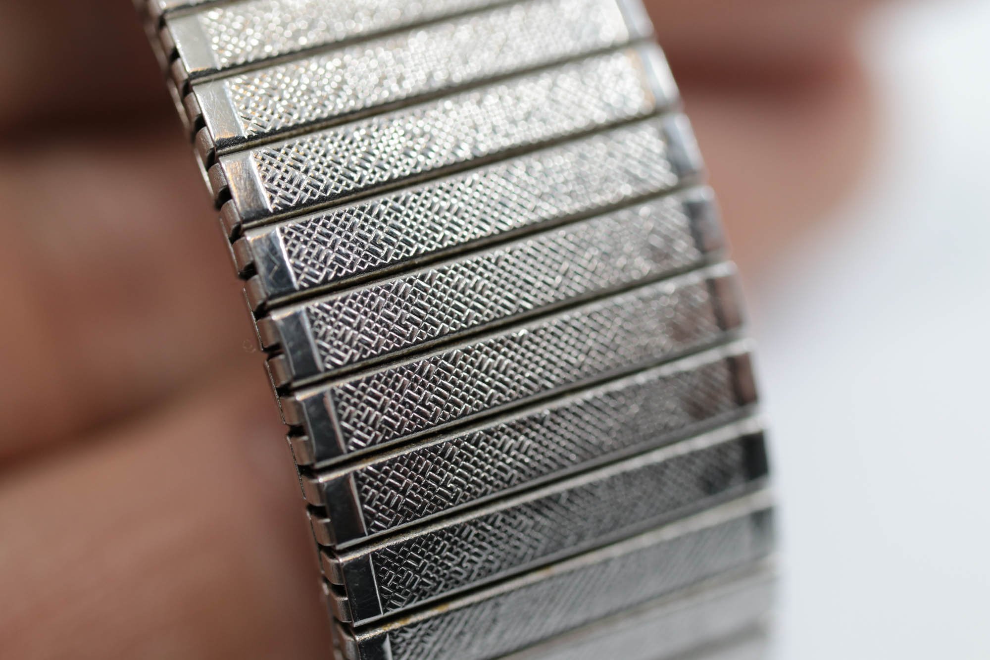 Among other details worth mentioning is the signed crown and bracelet. As the Citizen Shine 4-300017TA is not a very sought-after model, most of the examples available come in honest condition, complete with a crown signed with CTZ letters. It is not complicated to grab a piece fitted on the original quality stretching bracelet, also signed. Not bad for a watch around 100 euros. The last little detail I noticed with multiple Citizen Shines is connected to the case back. On many models you will steel see small original factory labels that alas their blind wearer probably couldn’t care less about as the frontal face was the important one.
