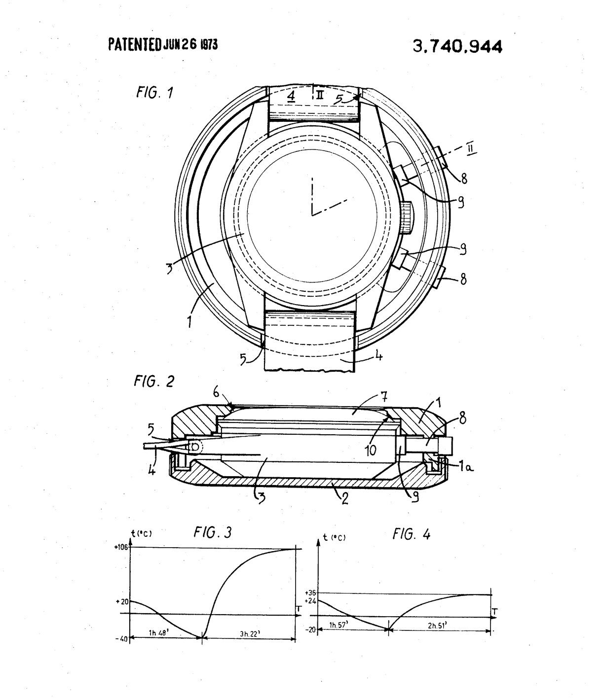 The most striking and technically significant feature of the Alaska I was its protective thermal housing — a removable heat-shield capsule constructed from anodized aluminum. Its purpose was to moderate extreme temperatures in vacuum conditions, providing the watch with a thermal buffer similar to the spacecraft’s barbecue roll. Omega’s patent US3740944A states that when the watch is left unprotected, its temperature could climb from 40 °C to 106 °C within three hours and 22 minutes of solar exposure.