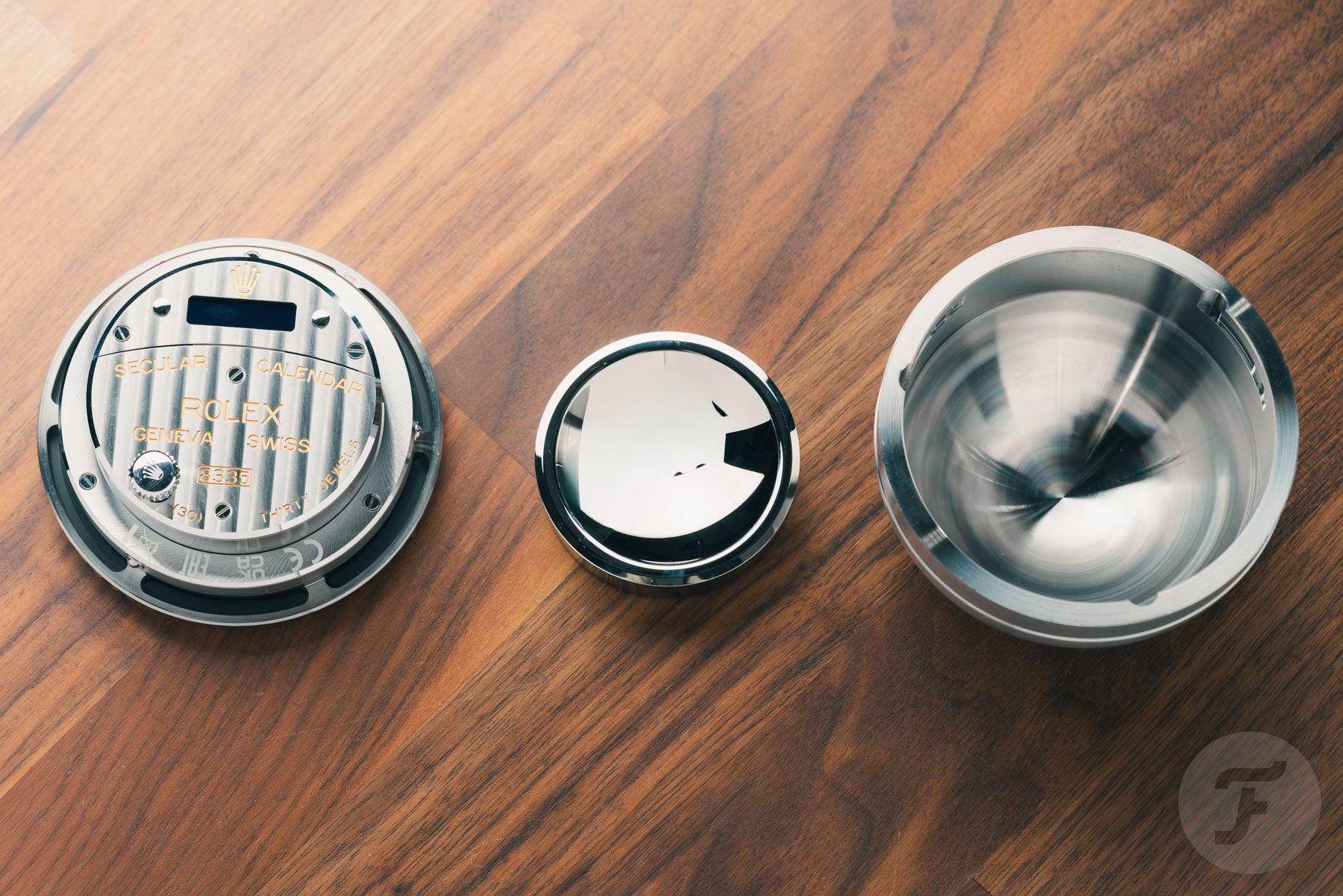 As mentioned, the bezel is fixed. You will find out why rather quickly. If you turn the front part of the case until it can’t go further, you will be able to pull it outward. Performing that motion just once will reveal the incredible quality of this desk clock. It all feels heavy and incredibly well machined. Once you pull out the front part, you will see that Rolex used a bayonet lock to keep the two parts together.