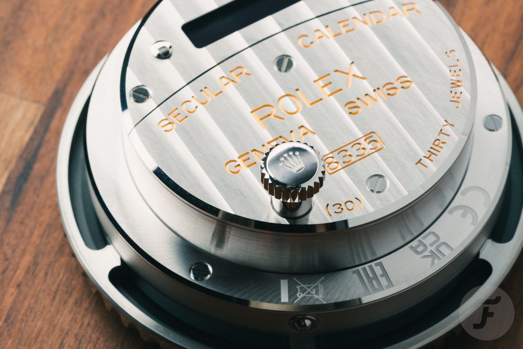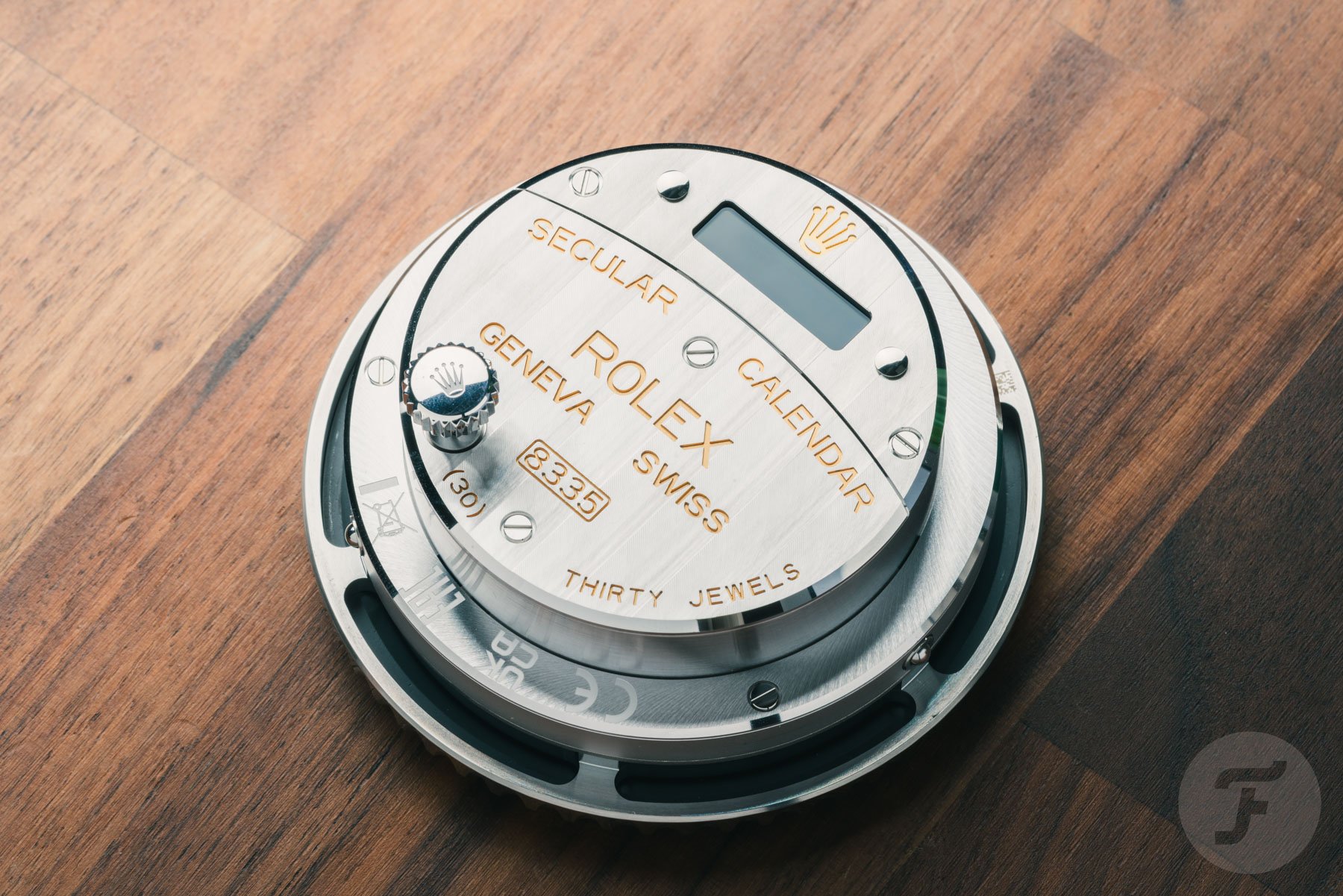 The Rolex caliber 8335 that powers the Submariner Date desk clock