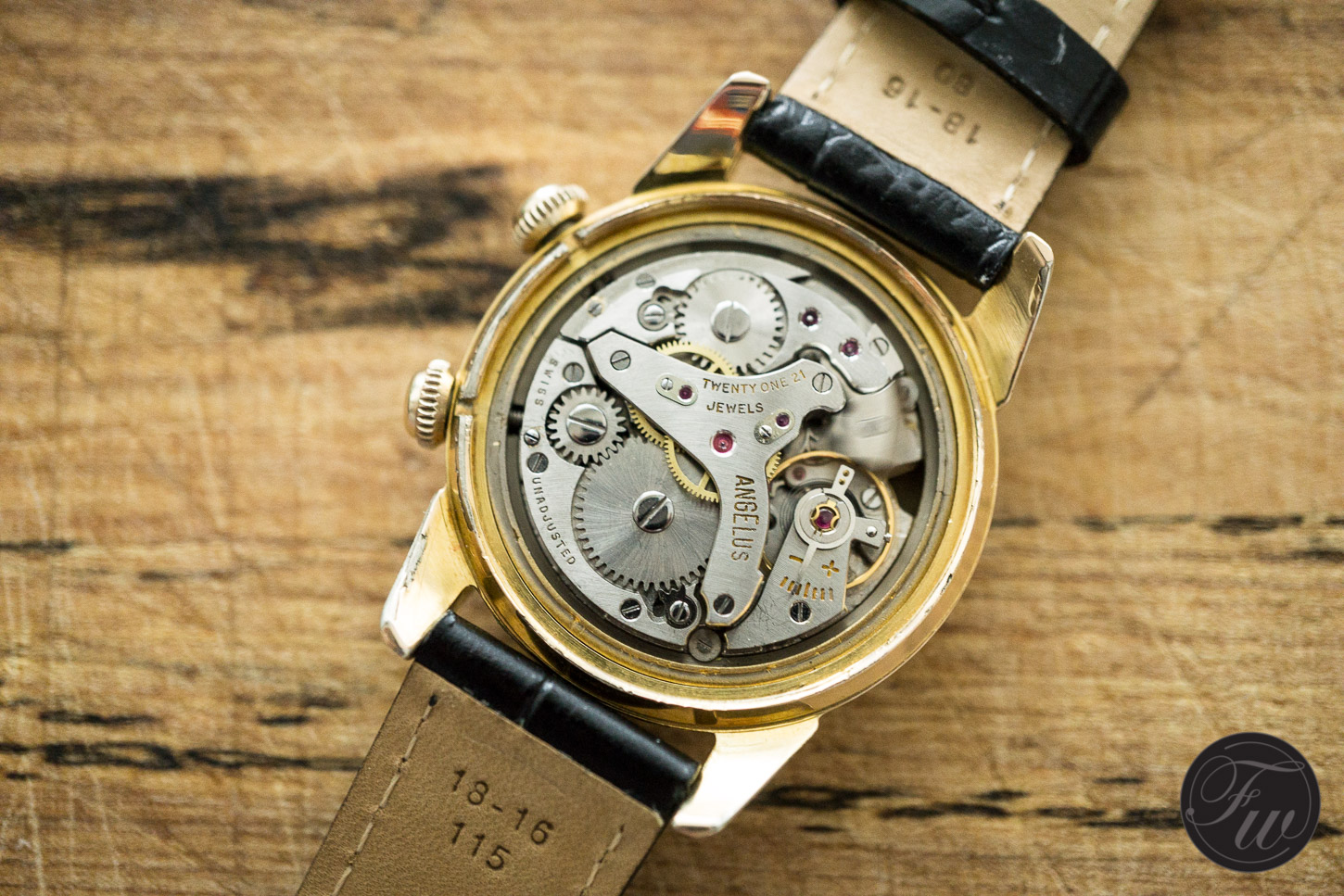 I wanted a watch with an alarm function ever since I heard my friend Eric Wind talking so fondly about his vintage Vulcain Crickets. Not necessarily for the alarm function, for that, I have the good old iPhone. More so for the sheer pleasure of owning a watch that is capable of doing such a thing. To me, a mechanical alarm is the complication of those huge old tin alarm clocks. It always fascinated me how can they implement this type of movement in a much smaller case. Now, of course, I understand that it is not such a big deal. Still, my captivation for alarm watches remained. As a matter of fact, one of my first vintage Omegas was a Memomatic with the rare blue and silver dial. During my Angelus research, I learned that they indeed had an alarm watch, the Datalarm.