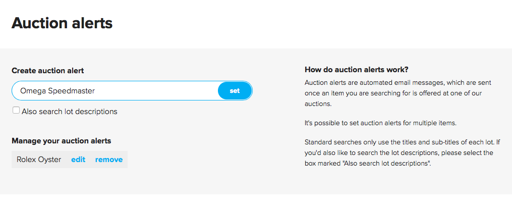 At Catawiki you can filter on specifics such as brand, case material and movement for example, making your search even easier. You can also set up search alerts to notify you when watches come up for auction that match your keywords, so you’ll never miss the chance to bid on that watch you’ve been searching for.