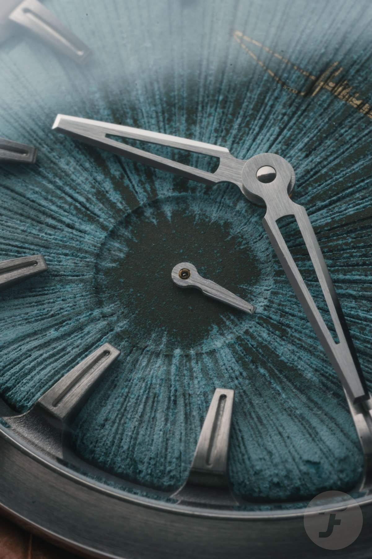 For this new duo, the in-house-created dials are truly special. Both watches feature domed copper-oxide patina dials. It all starts with a domed, solid piece of copper. The base dials get a sunburst pattern and layers milled and laser-etched into the surface. After that, the copper patina is then applied through a special in-house manufacturing process. Holthinrichs refined and mastered this process for its Raw Ornament Bronze. After treatment, the dials feature a unique color and texture. These new ones have a predominantly azure-blue tone with mossy-green accents.