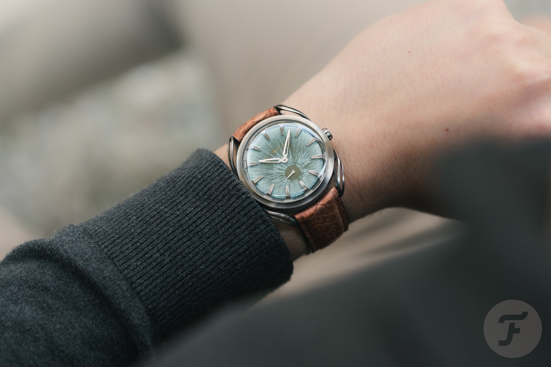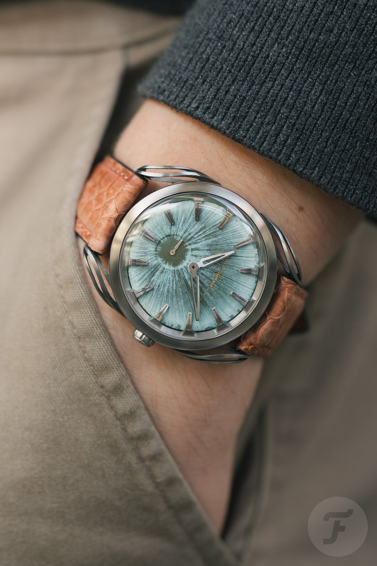 I had the brand’s Lab Series 1.24 on my wrist last year for the wrist shots in Daan’s article. Once the new models landed on my desk, I remembered instantly what I love so much about the case. Overall, the Art Deco-like presence of these watches feels graceful and elegant. But once you zoom in on the rough textures and the natural colors, you see the stunning contrast that characterizes these timepieces.