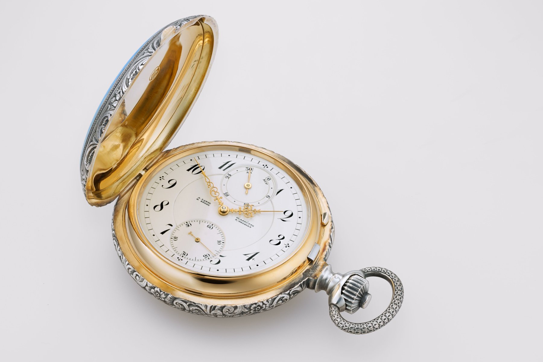 Back to the long-lost pocket watch No. 41000. In 1900, Lange initially delivered it to the Saxon court jeweler Paul Thimig in Dresden, who sold it to Otto Weigang, the owner of a printing house in Bautzen, for 1,500 gold marks. Weigang, an entrepreneur with a notable collection of important pocket watches, also maintained business ties with the A. Lange & Söhne manufactory. His chromolithographic art institute produced high-quality advertising materials for many Saxon manufacturers of the era. By the way, chromolithography is a technique for creating multicolored prints by using multiple flat stones, each inked with a different color and printed in sequence to form the complete image.
