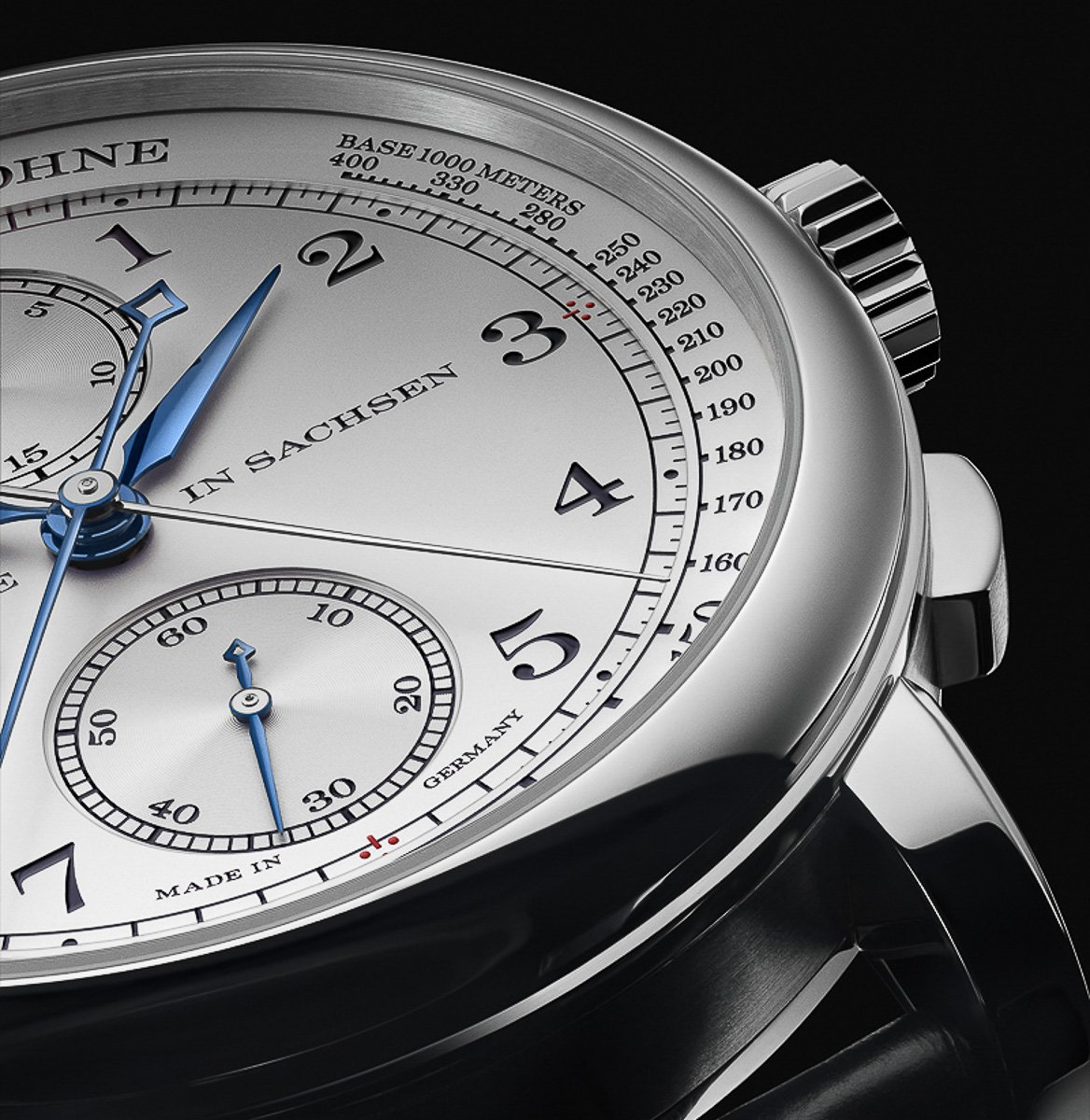 The watch houses a dial made from solid silver that is finished in what the brand calls an argenté color, essentially making it a silver-colored silver dial. All the different elements on the dial are executed in black for a classic look characterized by its great contrast and readability. The execution of the dial is spectacular, as we have come to expect from A. Lange & Söhne. Outside the Arabic-numeral indices is a black minute/seconds track and the tachymeter scale on an elevated ring. The small seconds counter and the 30-minute totalizer for the chronograph are placed at 6 o’clock and 12 o’clock respectively.