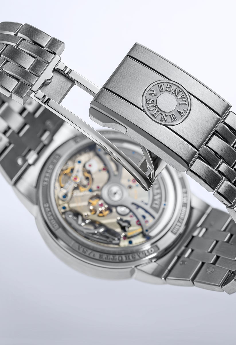 The case features deeply brushed surfaces with polished chamfers for dramatic effect, and the bezel has a mirror-polished finish, as we have seen on the previous Odysseus models. The bracelet surfaces have a brushed finish with polished chamfers. It gives the intricate bracelet design a great presence. And as seen on previous models too, the folding clasp features the “hidden” pusher in the shape of the A. Lange & Söhne logo. It’s an absolutely lovely bracelet that fits the case design of the new watch perfectly.