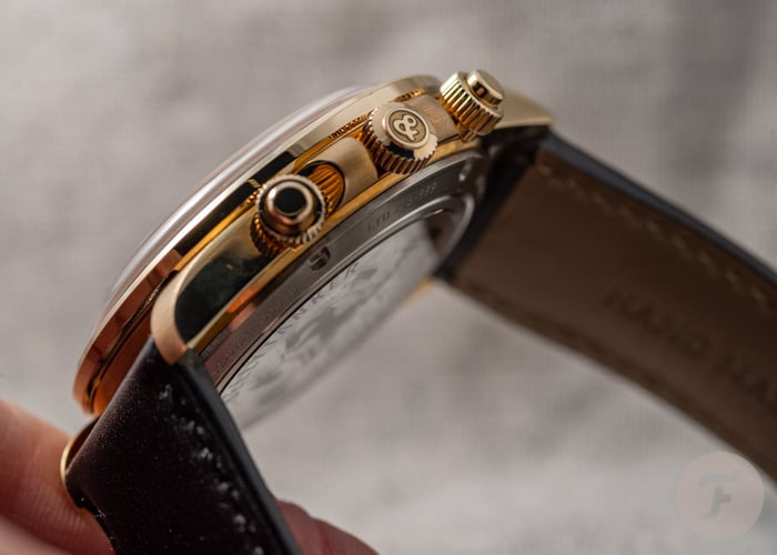 Perhaps it was a mind trick, having seen the new Tudor BB just meetings before, the Bellytanker (adore the wacky sounding name!) instantly packed a punch in comparison. The retro design was born from the imagination of the type of watches belly tank racers would wear in the 50s. The 41mm bronzo delivers a lot of value in a handsome package with a more sensible sticker price at 4,900 Euros, for a limited run of 999 pieces. Sure, the “stabilised bronze” may not age all that much, but this vintage-inspired sports chronograph no doubt exudes a rustic charm.