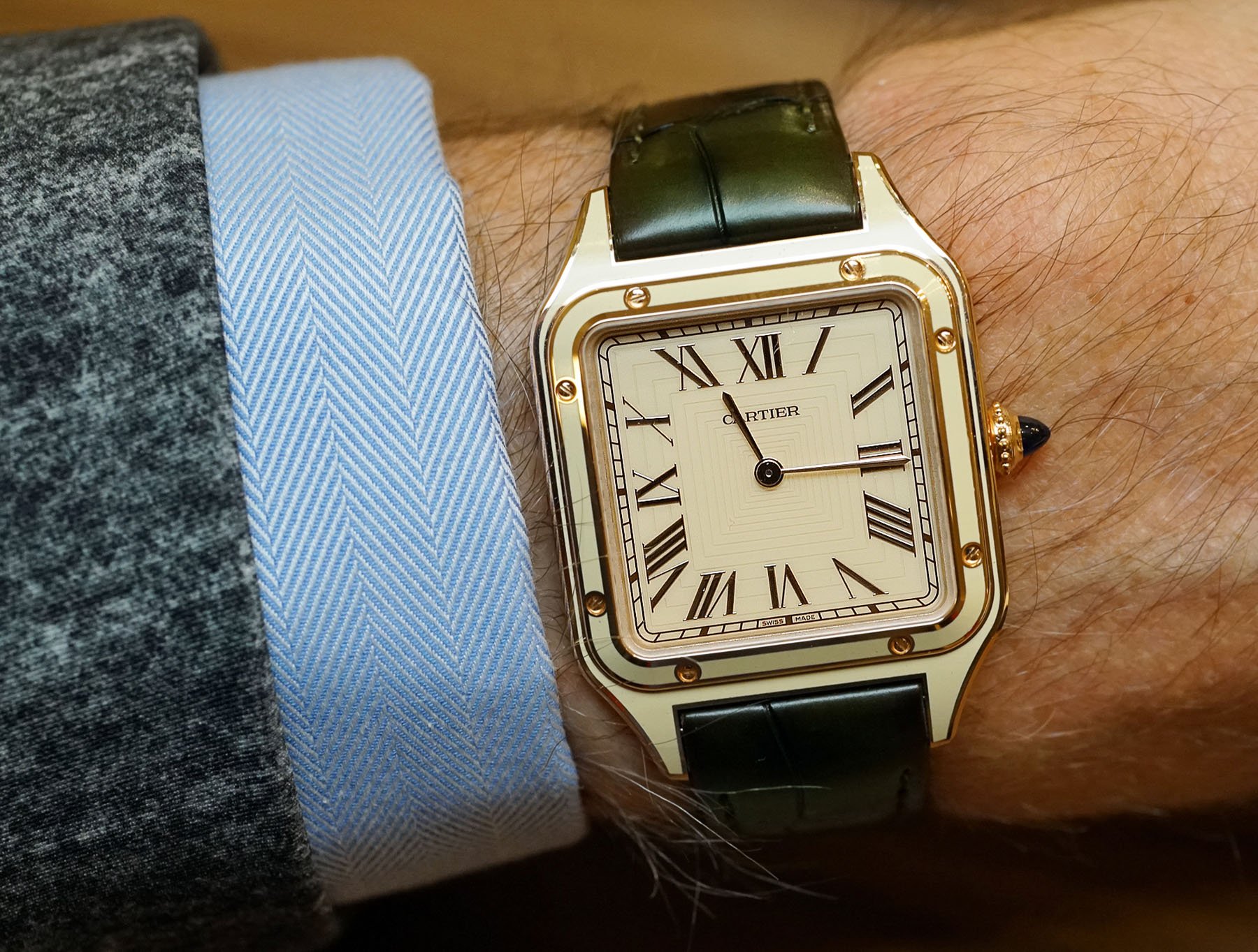 Of course, I have been dreaming about the possibilities. If I were ever in the position to do a Special Order/Métiers d’Art watch, I would probably go for a Santos-Dumont with a light green enamel dial, hand-painted numerals, Breguet-style hands, and some enamel details on the bezel of the case. Not loud, not over the top, just a bit more “me”.