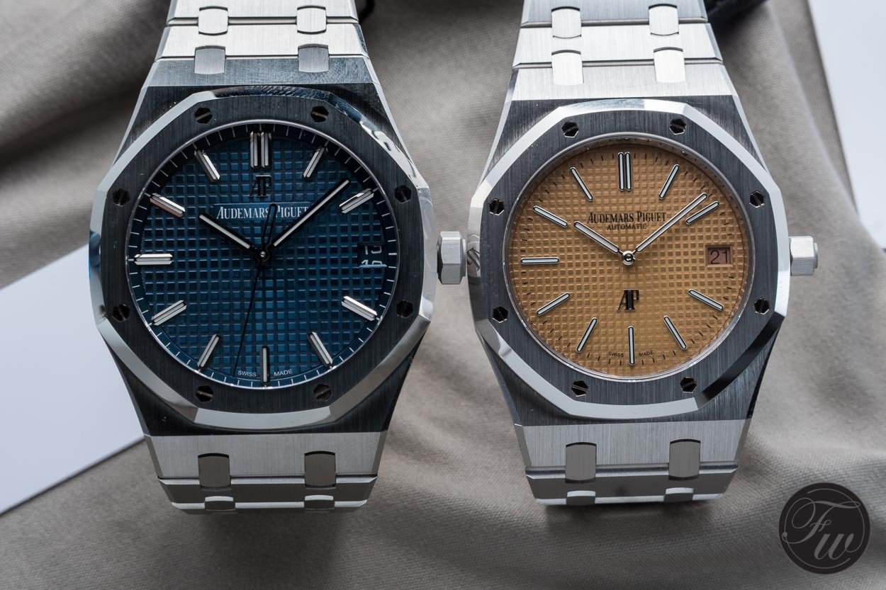 The retail price of the Royal Oak 15500 is €19.700,= (including VAT) and the Royal Oak 15202ST has a price tag of €25.300,= (including VAT).