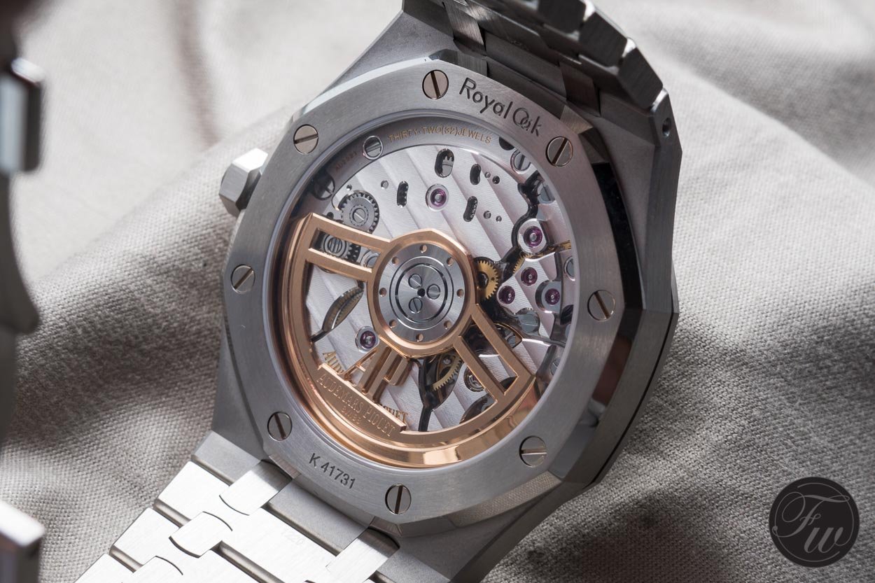 There’s a price difference of €5.600,= between the Royal Oak 15500 and the 15202, but I have the feeling that this isn’t decisive for someone who is considering one of these two references. One who is after the Royal Oak 15202 ‘Jumbo’ will probably not decide for the reference 15500 because of the lower price tag. A reason for the difference in price might be the manufacturing process of the caliber 2121 movement, which seems to be a bit more complicated.
