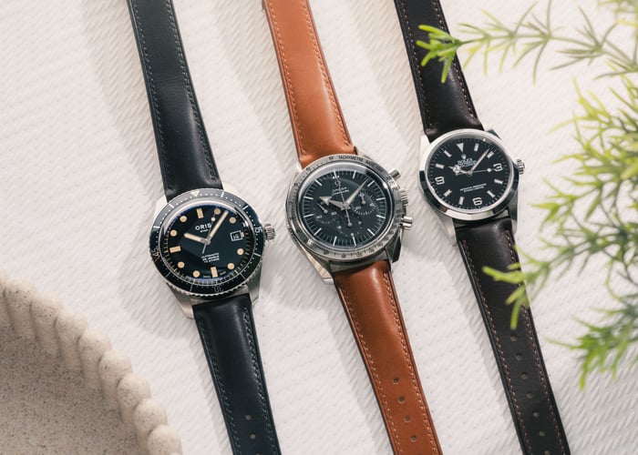 The tanning techniques used for these straps allow them to achieve earthy tones with a supple structure. However, significantly for Artem, the chrome tanning increases the strap’s water resistance, making them less prone to permanent staining. I once returned from a country walk and needed to hose down my muddy rain boots. Unfortunately, I forgot that I still had my Speedmaster First Omega in Space still on the wrist, and the spray from the boot soles showered the brown leather strap. Even drying it in the sun didn’t restore the strap’s original sheen. While leather straps have shorter lives than rubber or nylon ones, seeing a beloved strap stained during a fairly innocuous activity can be disheartening. That’s why Artem’s choice of chrome tanning offers water resistance, making the straps more suitable for everyday life.