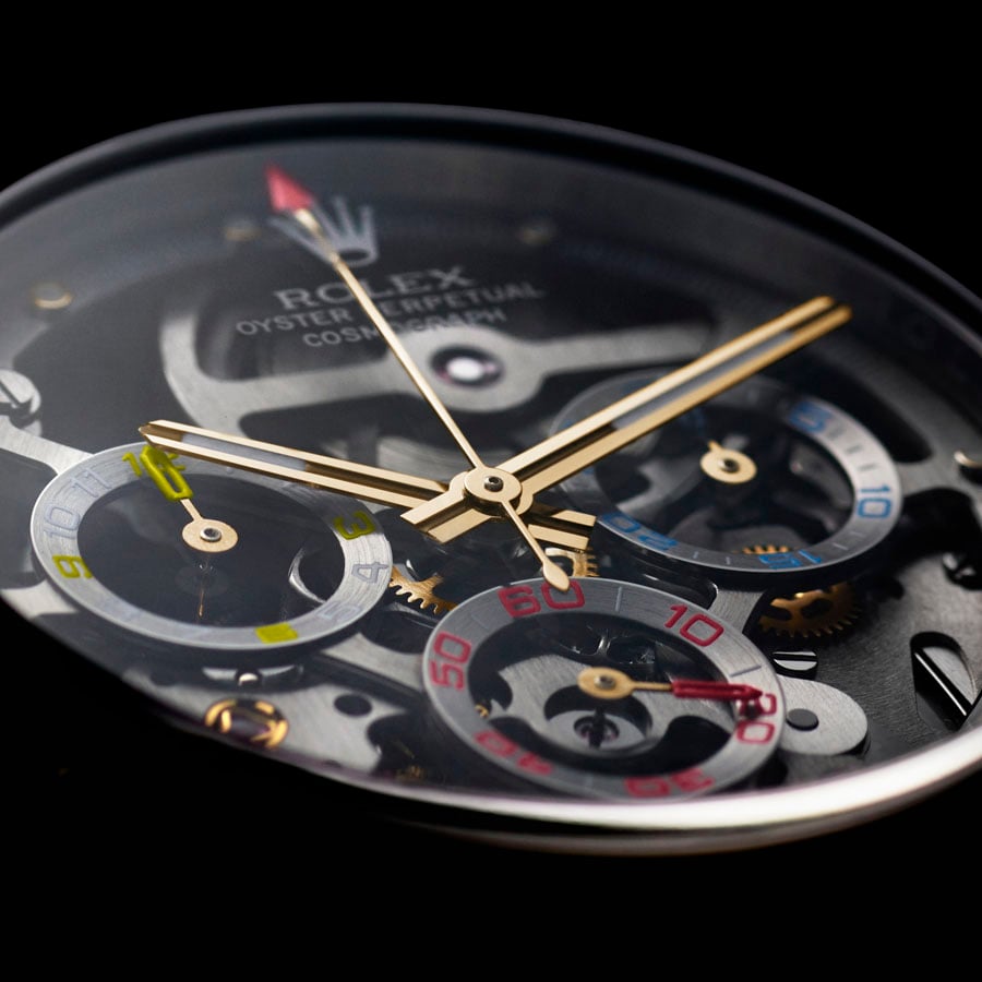 Artisans de Genève and Juan Pablo Montoya introduce « La Montoya » Gold, an audacious and sporty reinterpretation of the Rolex Daytona solid gold model. An edition limited to 42 pieces.« La Montoya » Gold is undoubtedly the meeting of all superlatives. It brought to life this unthinkable challenge : to revisit one of the most iconic timepieces of this decade by creating, for the first time, a skeleton version of the Rolex Daytona timepiece, which stands up to its unwavering and timeless reputation, all while providing exceptional detail and execution.