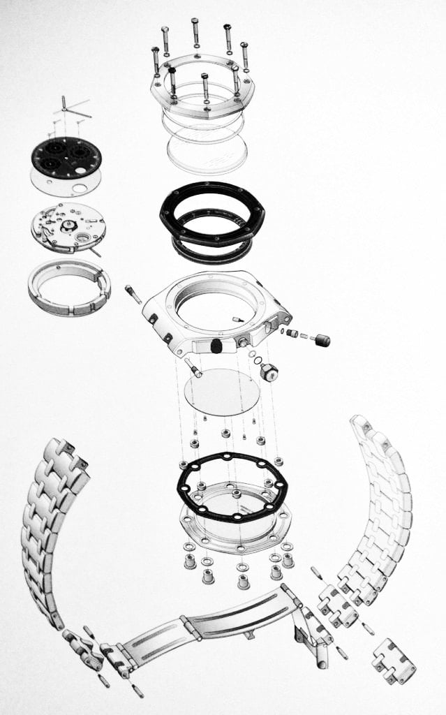 According to Gueit, it was time for a masculine watch, as he had noticed that women were wearing men’s pieces. Thus, he wanted a watch that would be an archetype of masculinity. And to him, that meant one with huge proportions. Such extreme proportions, in fact, that women would refrain from buying or wearing one. Although Urquhart gave the young designer the assignment to come up with something for a younger audience, he wasn’t quite ready for what Gueit presented.