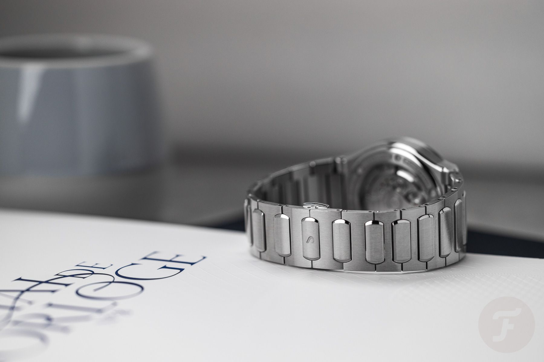 Moving on to the bracelet, the basic design remains unaltered from the one introduced for the Opphav last year. Straum decided to move to a fully integrated fit with the case for the Jan Mayen collection. The traditional “end link” attachment has been replaced with a genuinely integrated fit, providing a cohesive aesthetic with a more seamless and luxurious appearance. There’s a lot to be said for the visually pleasing flow of a bracelet into the case; if it was good enough for Genta, that speaks volumes.