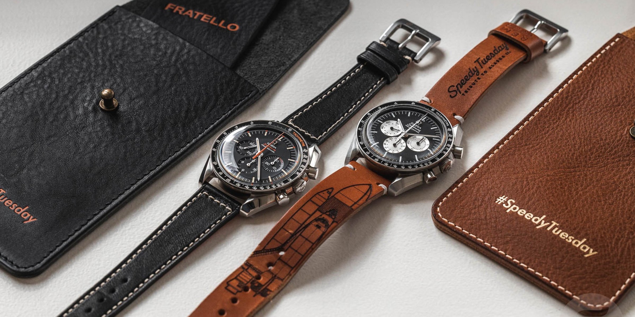 Two Speedmaster Speedy Tuesday watches