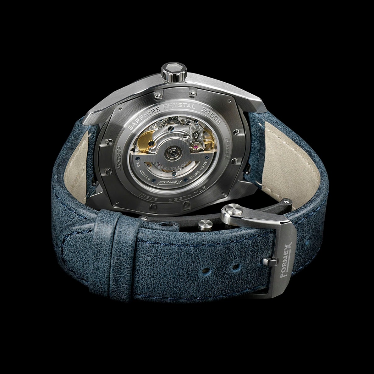 COSC-certified and fully decorated Sellita SW200-1 automatic movement with a custom skeletonized rotor