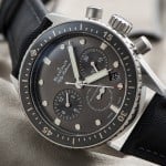 There are basically two versions of the 43 mm Blancpain Fifty Fathoms Bathyscaphe Chronograph Flyback. You either go for brushed steel with a meteorite gray dial or brushed ceramic with black dial. Both configurations have a sunburst finished dial and unidirectional bezel made from ceramic. Choice of straps for both watches is either a NATO fabric or sail canvas strap. As a first in the Bathyscape line, the steel version will also be available on a metal bracelet.