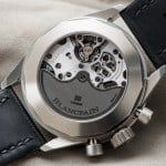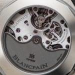 On the back of the Bathyscaphe Chronograph you will find a sapphire case-back revealing the Blancpain caliber F385 movement. The oscillating weight is made of 18-carat gold and finished with a platinum alloy. Silicon was used for the balance-spring giving the watch good anti-magnetic qualities. The column-wheel can be seen on the right, partially covered by the oscillating weight.