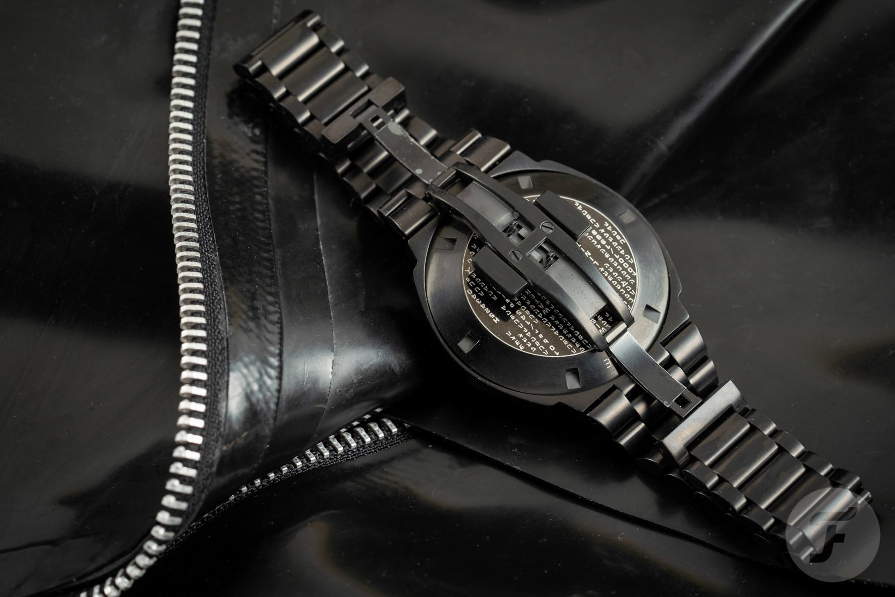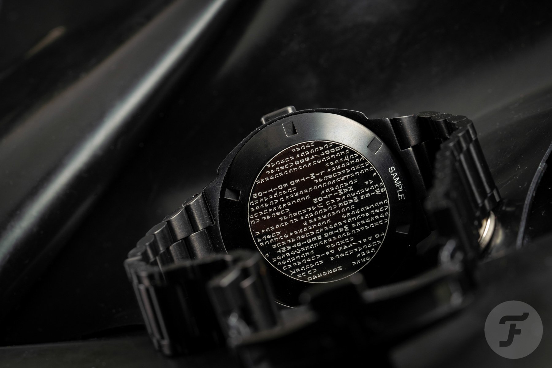 Instantly recognizable due to its unique shape and awesome, tapering, President-like bracelet, I couldn’t help myself and proceeded to quickly press the button. Bright, glowing green numerals replaced the dimer digital ones on the shiny black display. It wasn’t until I flipped it over that this made more sense. On the case back, I found the unmistakable wall of vertically flowing text from The Matrix movies. The black-and-green color combination was no coincidence. Also not a coincidence, the launch date of this watch. It’s just in time for the latest installment in The Matrix movie franchise.