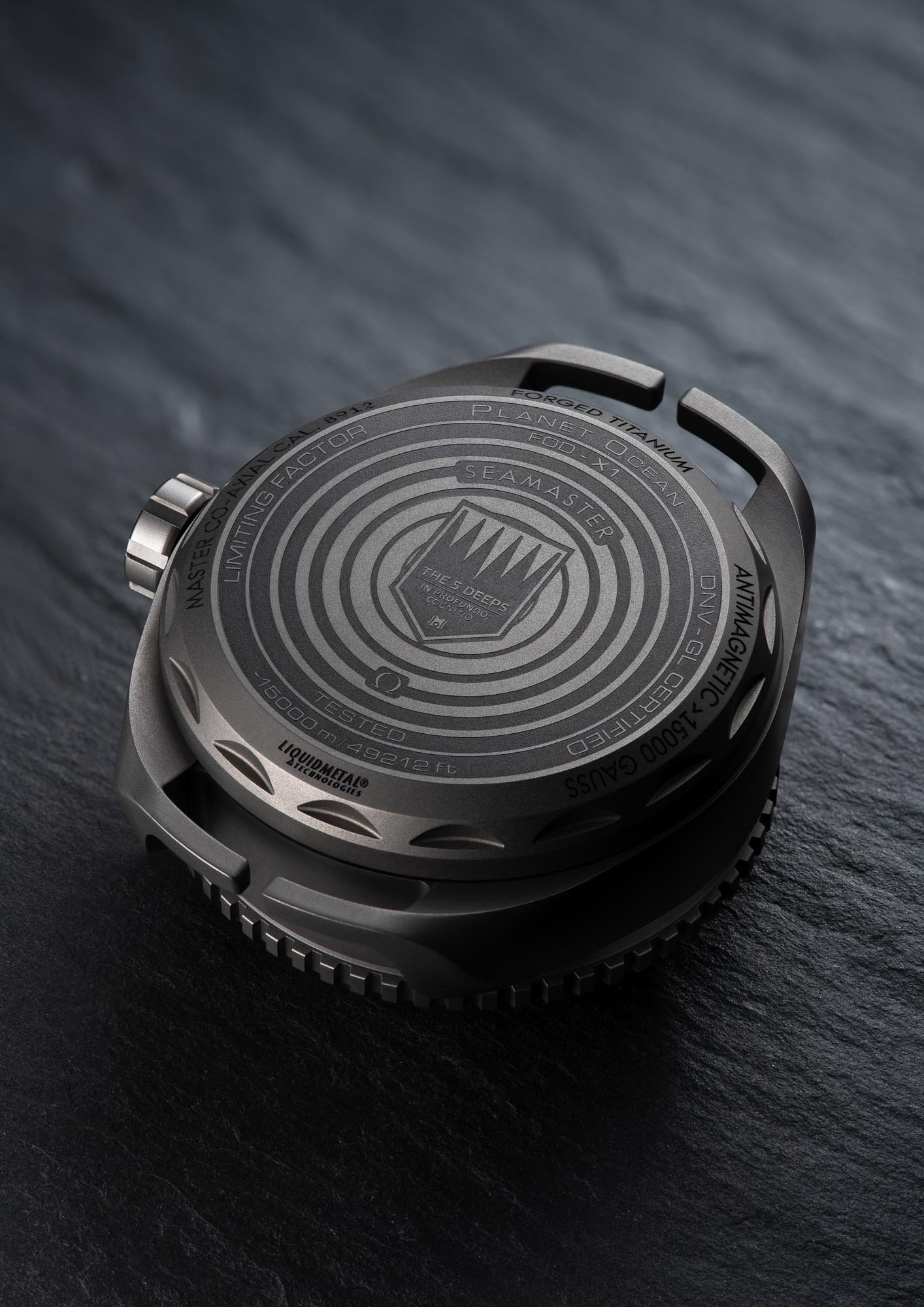 The Omega Seamaster Planet Ocean Ultra Deep Professional is made of forged Grade 5 titanium and from cutoffs of the same material used on the hull of the Limiting Factor submersible used by Vescovo. The hull material was DNV-GL certified (DNV-GL is a 3rd party certification company) and the three Omegas contain the same DNV-GL stamp in their case backs. But we’ve seen titanium often as a case material on dive watches, so that’s not the innovation that excites me.