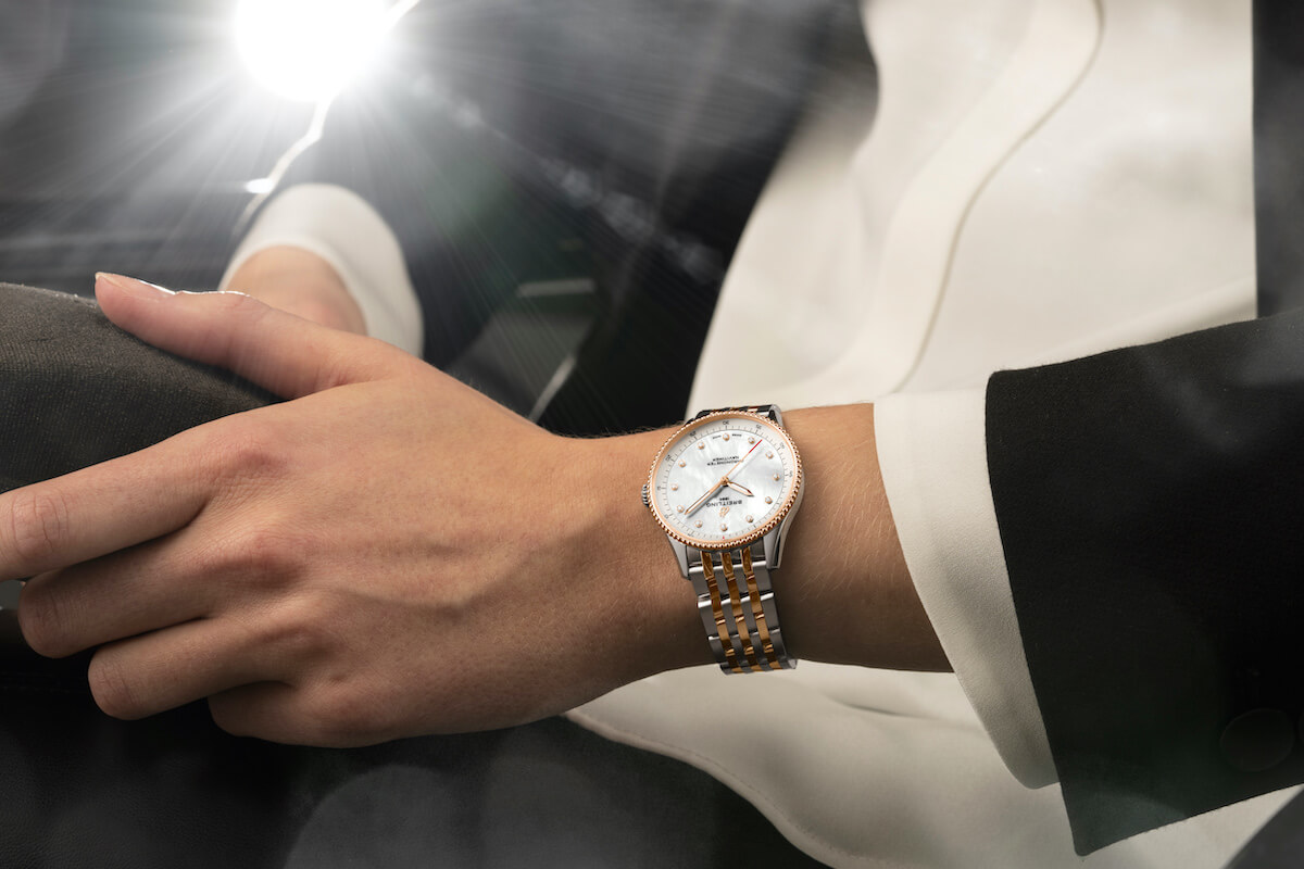 Today, the heritage collection expands with a 36mm automatic model and a 32mm quartz model. Each is available in ten variants with three case materials — stainless steel, 18K red gold, or a combination. In addition, customers can choose between a seven-row bracelet with a folding clasp or an alligator strap.