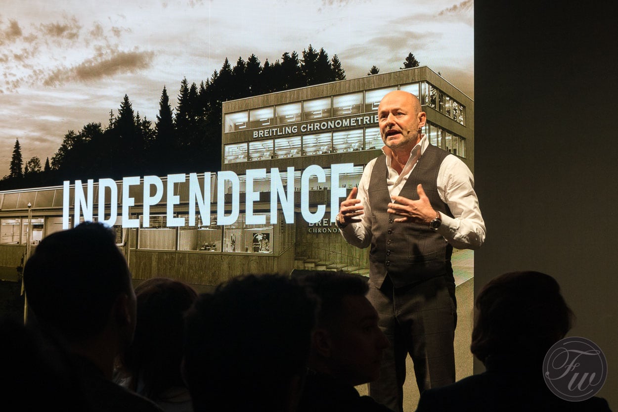 After that several partners of the brand take the stage. Fred Mandelbaum, or @watchfred as many will know him by on Instagram, takes the stage and talks about the brand and its heritage. Followed by the head of marketing for Bentley, Christophe Georges, who explains about the partnership they have with Breitling and how successful it has been for the both of them. Here we get a sneak preview of the new Breitling for Bentley.