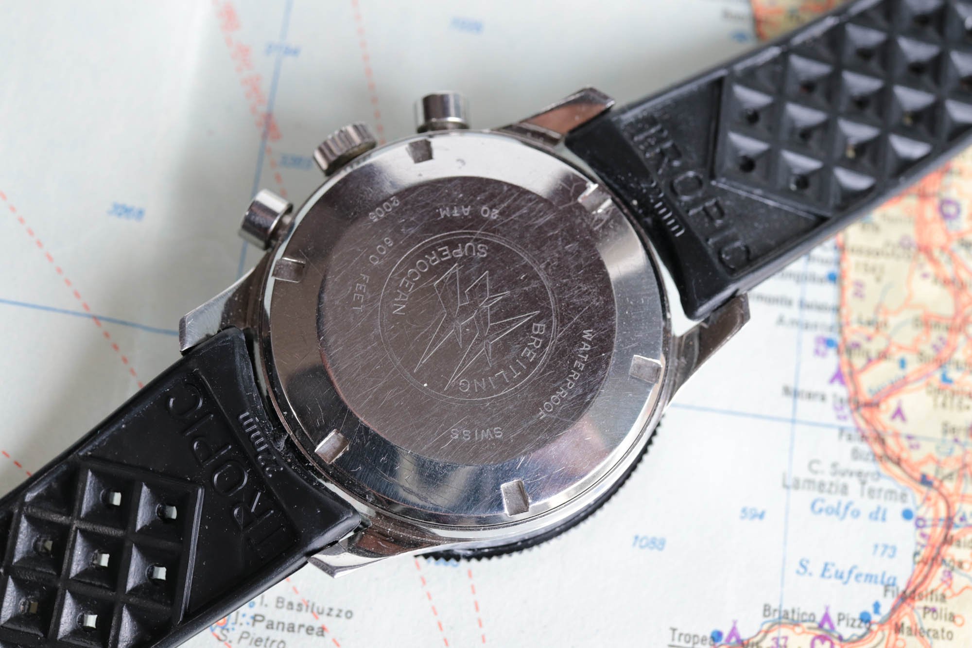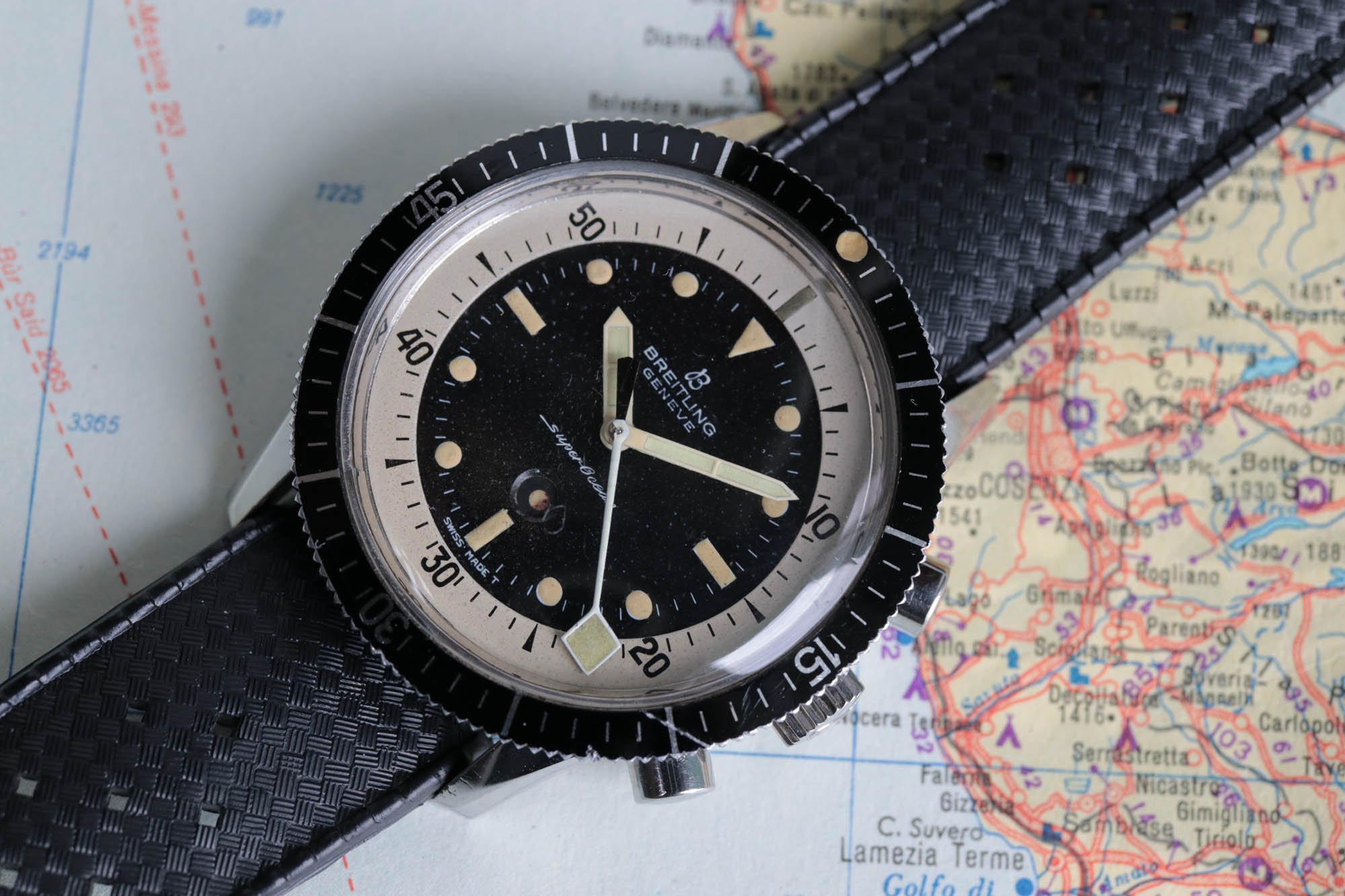 The Breitling SuperOcean ref 2005 you see here can take a break after 50 years of being ready to sink into 600 foot waters. It is not only because I do not dive, I do not swim! One would call me a perfect fit for this late 1960s diver. To be perfectly precise, I can’t swim. Which means I can guarantee that this Breitling SuperOcean will never see water in the years to come. The closest it will get to the ocean will be stretching it here over the map. a map that took a few calls and a bit of driving around the city to source such a nicely patinated relic coming from the same era as the watch.