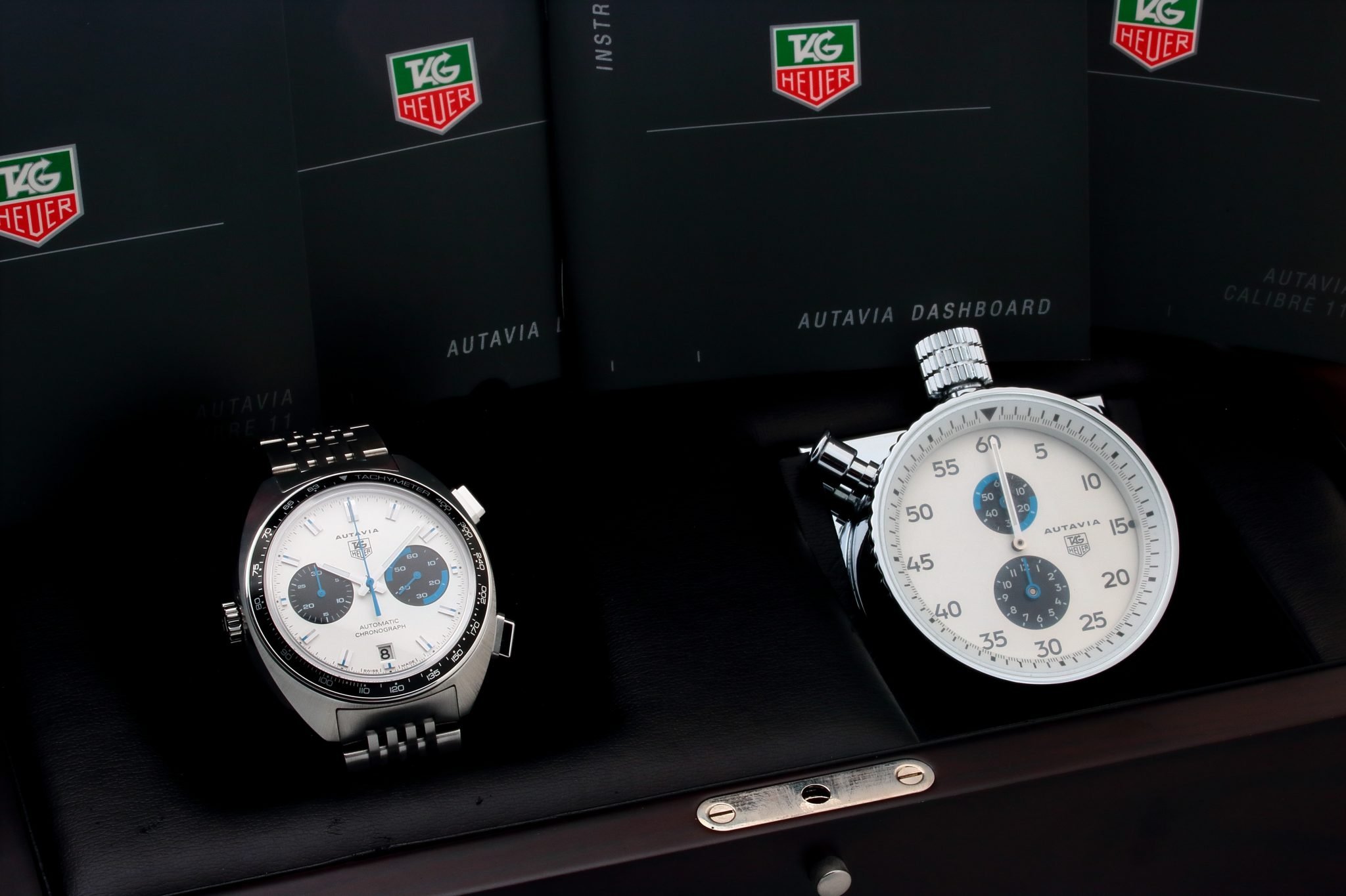 Overall, TAG Heuer updated the design of the watch slightly to meet modern standards. But the brand did so with grace, as the watch still looks like a very nice re-edition of the original watch. Alongside a regular release, TAG Heuer also produced a limited number of 70 box sets that featured the watch and a dashboard timer. Inside the case, TAG Heuer equipped the watch with its new Calibre 11, based on the ETA 2892 movement with an added Dubois-Dépraz chronograph module. It’s the same movement used for the 2010 Silverstone and thus features the crown on the left side like the original watch.