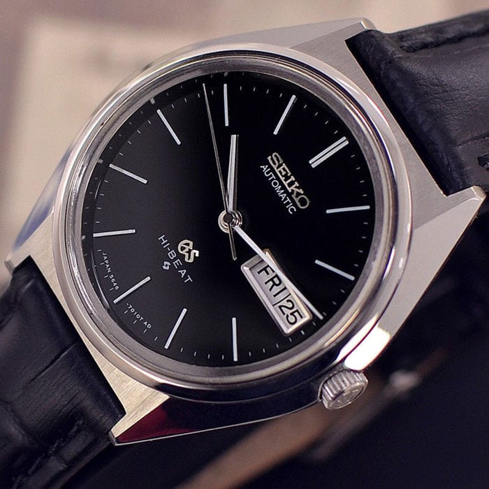 Anyway, the second part of the reference number often refers to a certain model. However, -7010 was also used for the Tuna from 1975 (6159-7010) so it doesn’t always add up. On the back side of the watch, you will find the GS medallion and a serial number. The first digit of the serial number indicates the production year and the second digit stands for the month. In this case, the watch dates back to January 1973. The hands on this GS model, as discussed in the introduction of this article, seems to be original and so are the dial and crown. The case design is awesome in my opinion and still has its sharp edges with these beautiful polished and brushed surfaces. This watch fetched €999 and that’s actually a no-brainer for those who would love to own a Grand Seiko. For me, Grand Seikos of this era are super underrated. If you can live with the relative small case size, go for one of these.