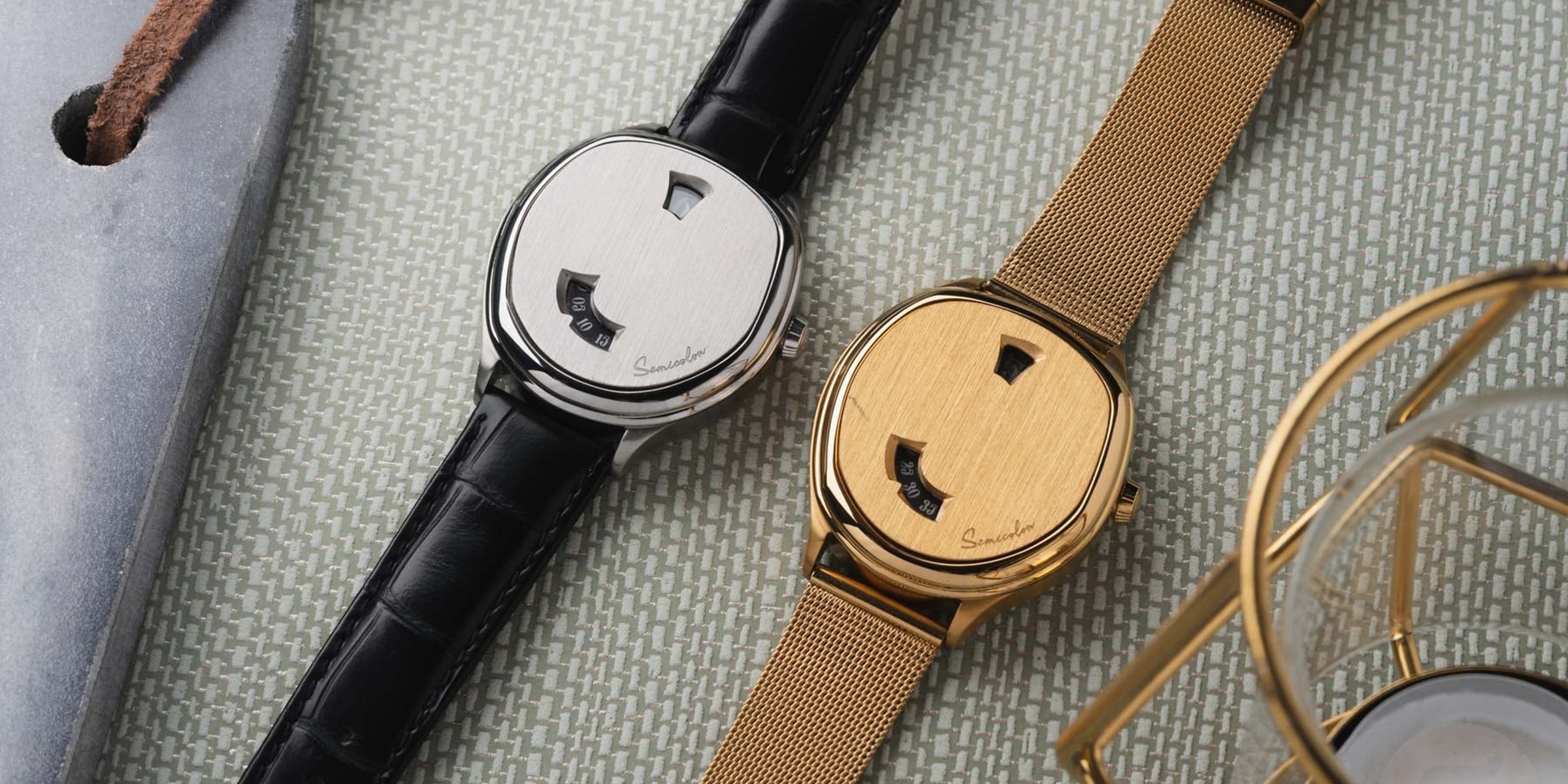 It is safe to say that the past 12 months have been all about the renaissance of the jump-hour watch. With the Cartier Tank à Guichets, Audemars Piguet Neo Frame Jumping Hour, Christopher Ward C1 Jump Hour Mk V, Maen × Nico Leonard Jump Hour, and Louis Vuitton Tambour Convergence Pink Gold, we have seen quite a few striking examples. What these watches have in common is a creative freedom that traditional watches with dials and hands often don’t allow. Semicolon is a new brand that took that freedom to develop the Anachron. Let’s check out this inaugural release from a new Hong Kong-based brand launching on Kickstarter today.