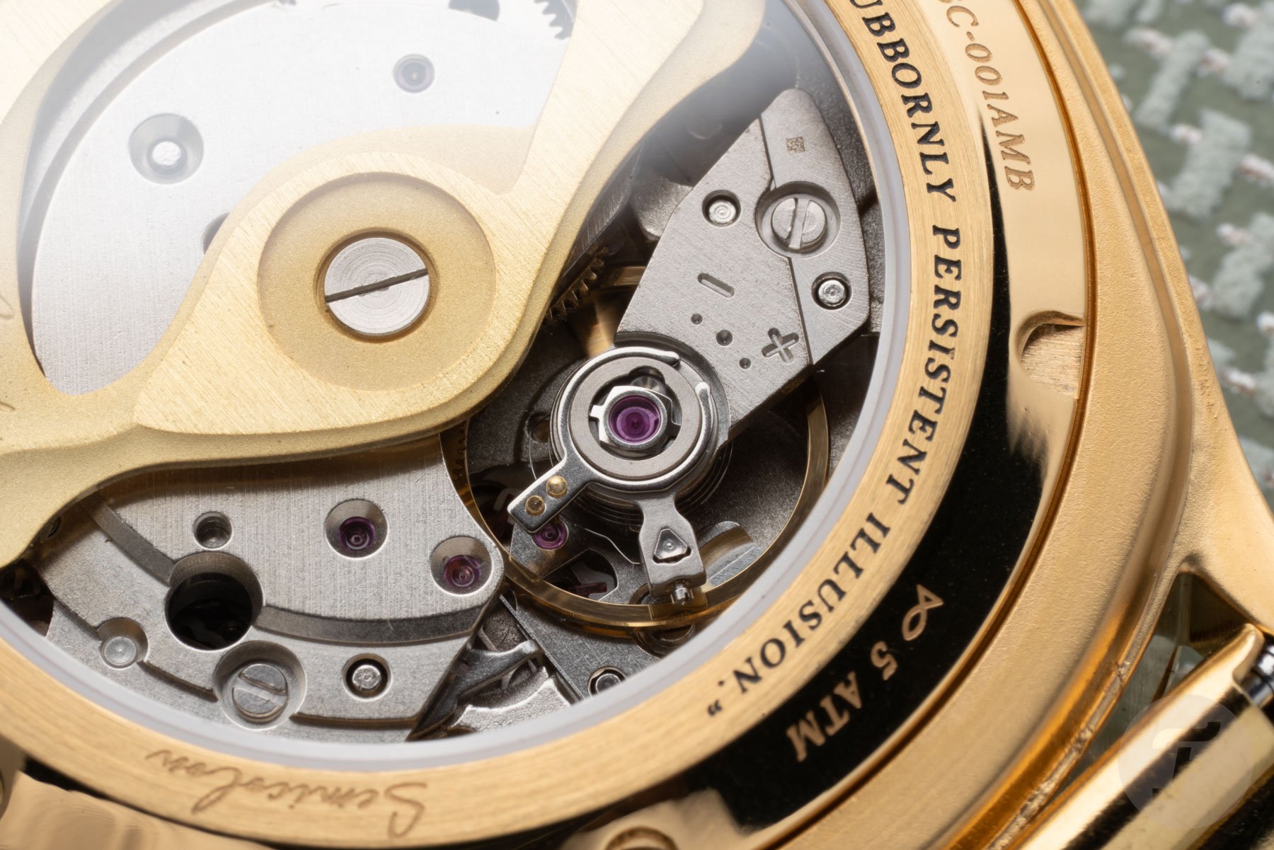 A nice detail on the case back is Albert Einstein’s quote, “the distinction between past, present, and future is only a stubbornly persistent illusion.” It refers to the block universe theory in physics, which suggests that time is a dimension like space, in which all events — past, present, and future — exist simultaneously rather than flowing linearly. It’s a nod to the idea that a watch is more than an instrument that displays the time traditionally.