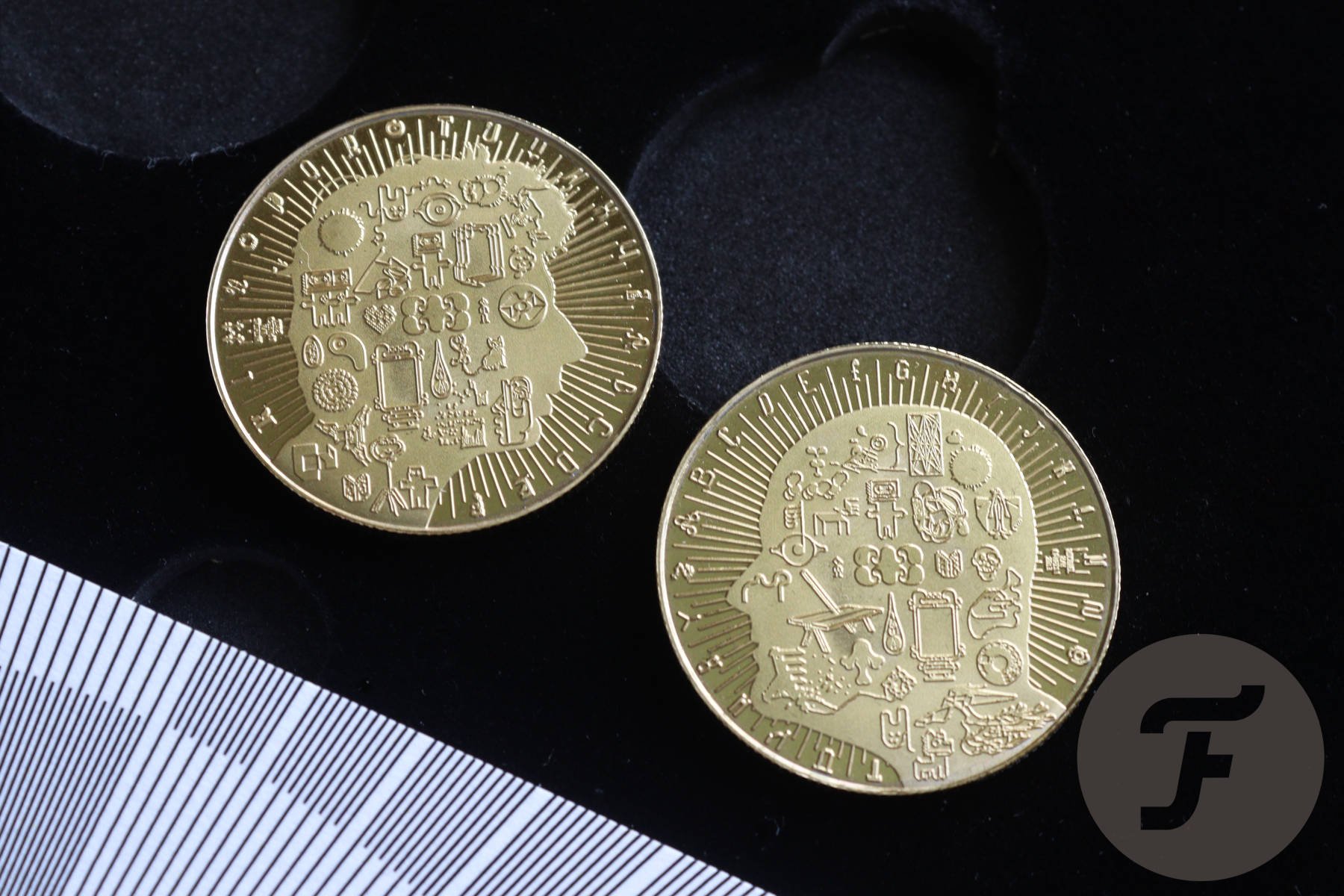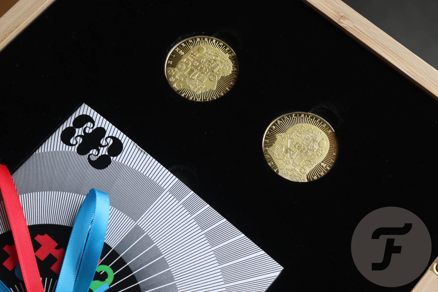 Beneath the colorful cardboard sleeve, a wonderfully etched bamboo box opened up to display more goodies. Not just the watch, but two gold coins/tokens and a little booklet tied up with ribbon. The two coins/tokens (or whatever you want to call them) turned out to be 24K gold-plated, and the cool little silhouettes represent the two Ms from M/M. Stuff like this can all too often be quite gimmicky, but this felt kinda cool. I wasn’t put off at all. The coins are fun little objects covered in weird little symbols. I know some people like carrying objects like this around in their pockets as a totem or a good-luck charm. These are perfect for such a whim. Opening the booklet gives the reader more info about M/M PARIS and shows some images of previous works and installations.