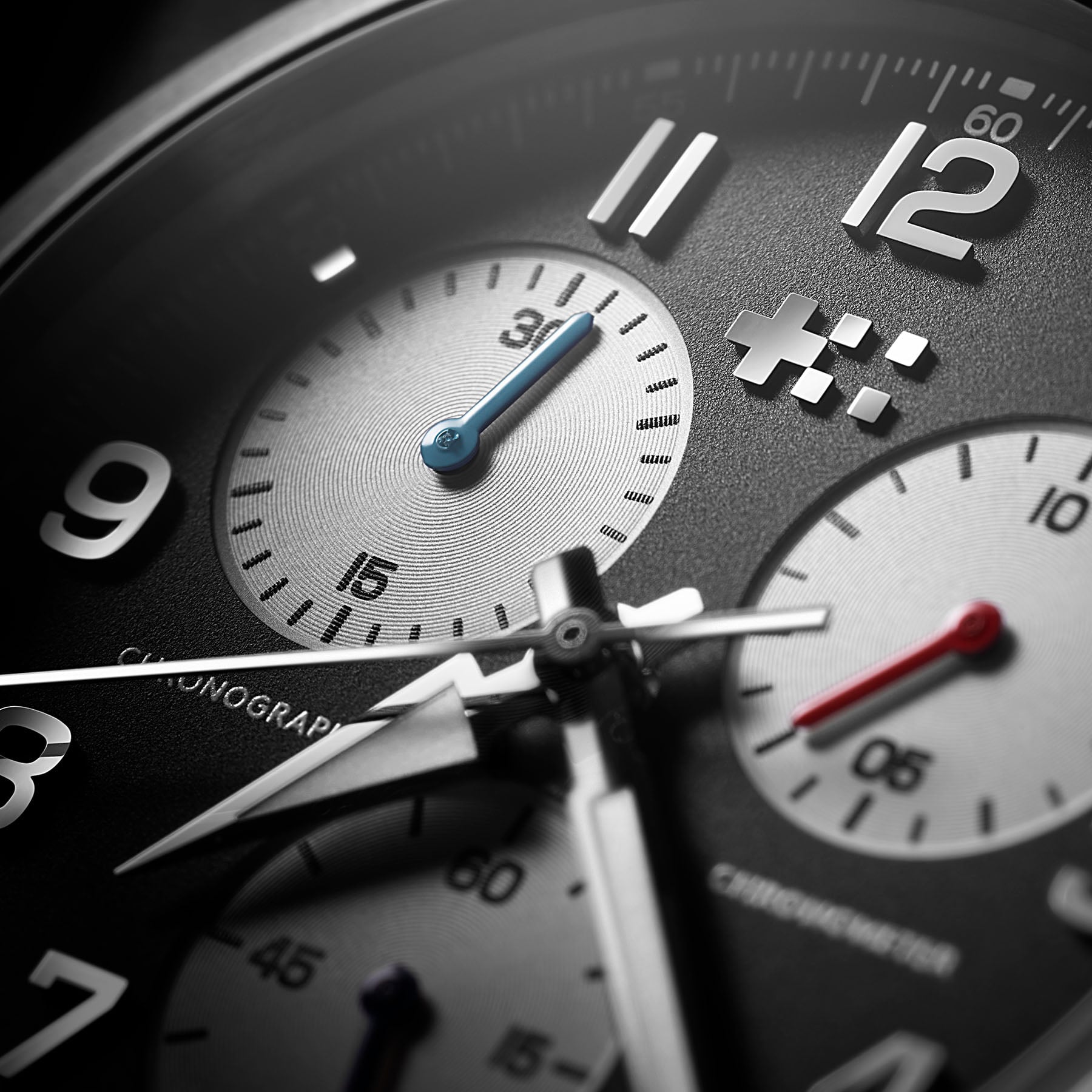 The matte black dial features a fine frosted texture to create some nice depth. It is graced by diamond-polished applied numerals and white sub-dials featuring concentric graining and black numerals. At 2, 6, and 10 o’clock, the numerals are replaced with small applied square markers because the sub-dials don’t allow for a full numeral. As mentioned, the sub-dials feature three differently colored hands, which refer to the different branches of the His Majesty’s Armed Forces. The red hand is for the Army, the dark blue one is for the Navy, and the light blue hand is for the RAF.