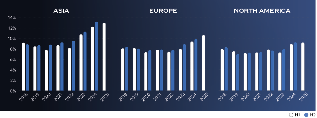 This is a question we will happily address in our upcoming H2 2025 report. But first, let’s have a look at the overall market and brand performances from 2018 to today in general, and H1 2025 in particular.