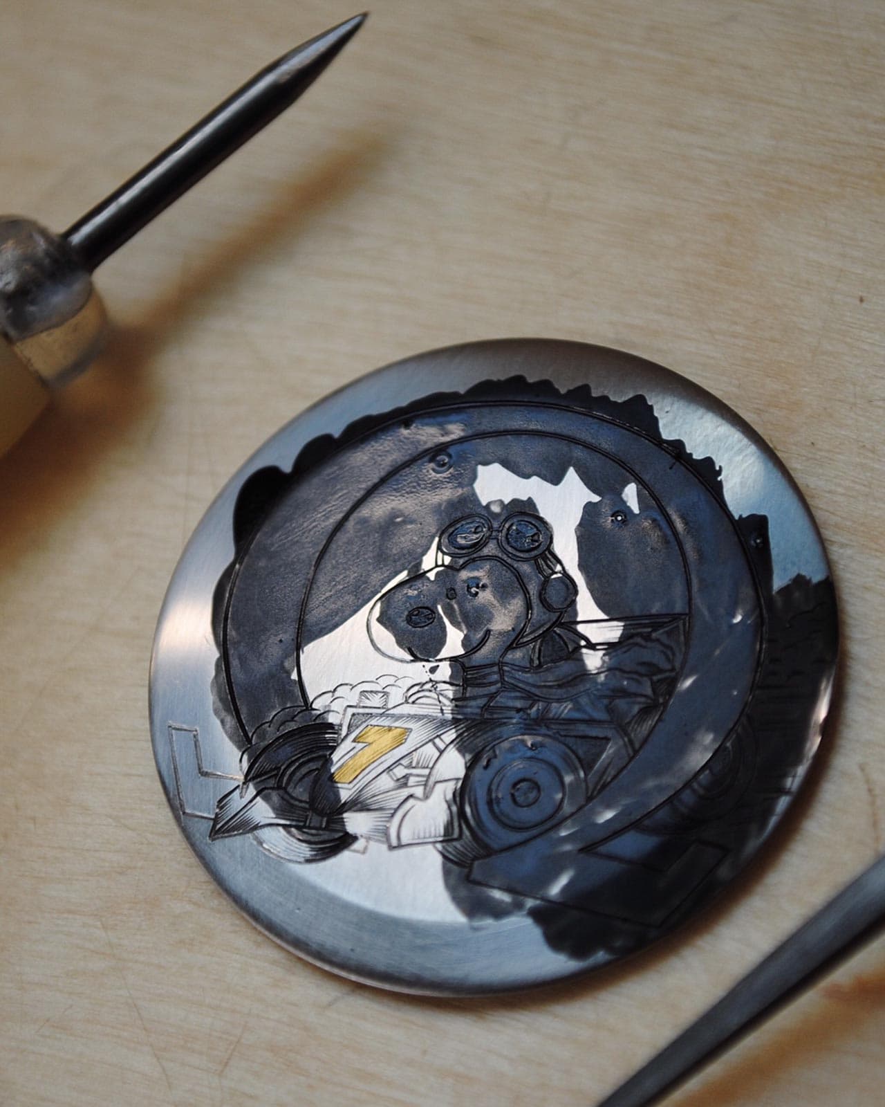 Johnny ‘King Nerd’ Dowell (King Nerd is his instagram name) is an engraver, trained by James Purdey & Sons, and has worked on several watch projects. This includes work for brands like Jaeger-LeCoultre, Officine Panerai, Linde Werdelin, Bamford Watch Department and a couple of others.