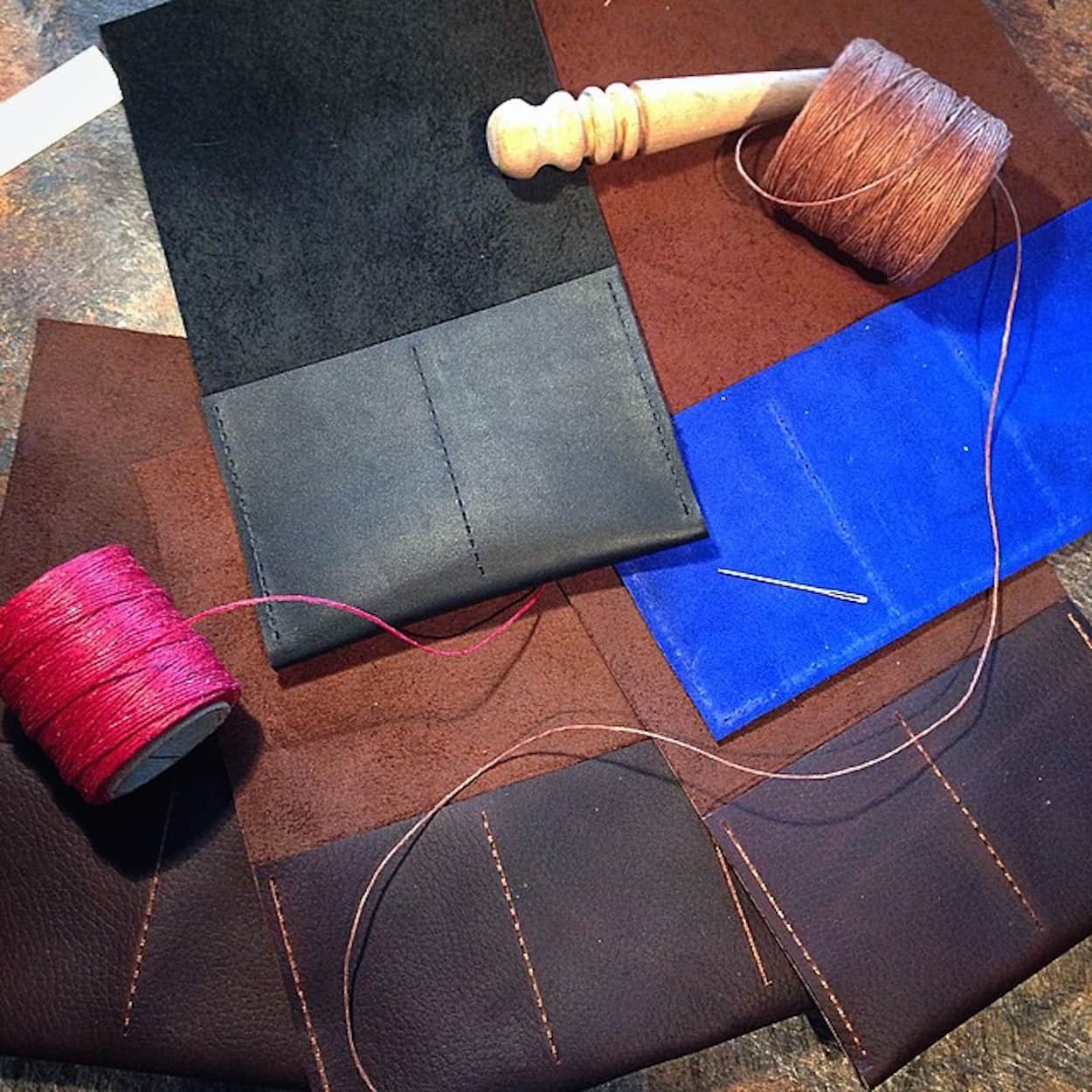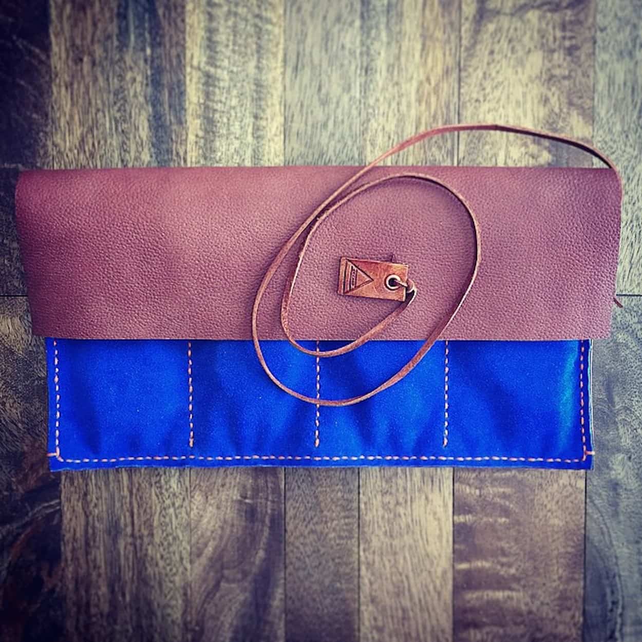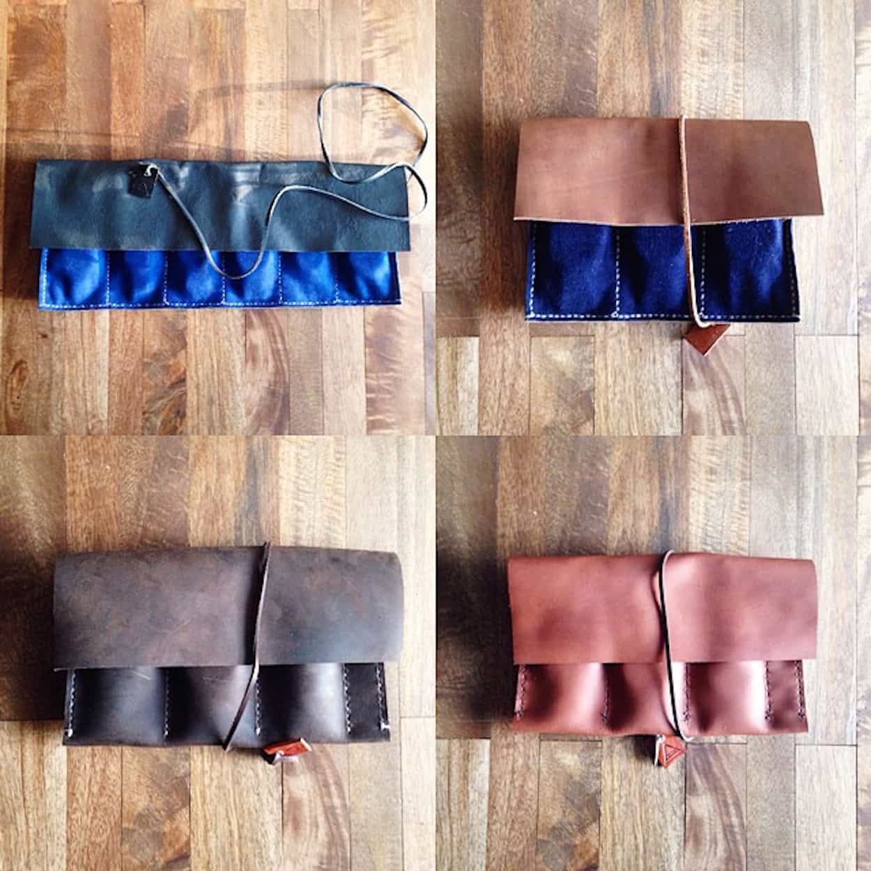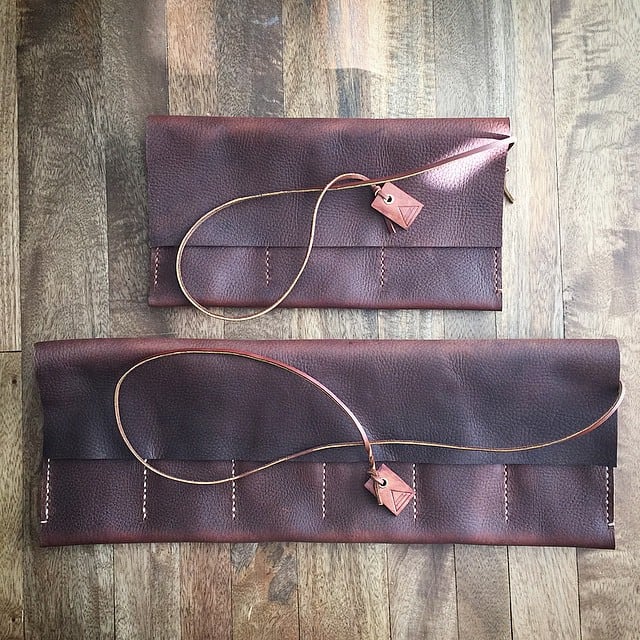 The customer gets to decide on the pocket configuration. I can also add smaller tool, strap pockets, or add a flap so they can store jewelry or cufflinks too. I’ve also adapted the rolls for knife and pen collectors by making the pockets taller or narrower as needed. I source most of my leathers from a great supplier in Minnesota. Also, as I mentioned before I’m lucky to be able to re-purpose many leather samples from my day job – which are usually one of a kind. I’m now using Maine Thread Company thread too.