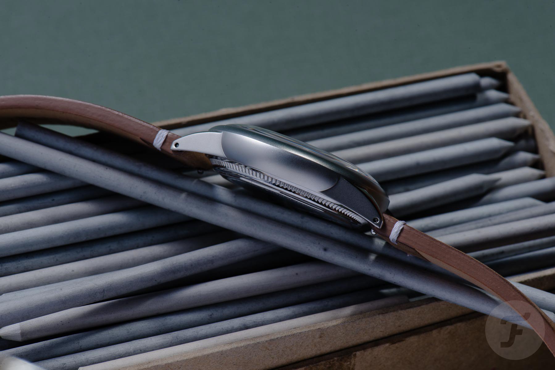 The size is not the only aspect that is different. The casing material has changed as well. During WWII, stainless steel was scarce or more necessary for other applications. Thus, the original A-11 was made from chrome-plated brass. Today, the case of the Praesidus A-11 Tom Rice Edition is produced according to modern standards in solid stainless steel, as is the screwed-in case back. The production version of the case back differs from the one seen above, and it comes with some commemorative engraving etched in it.