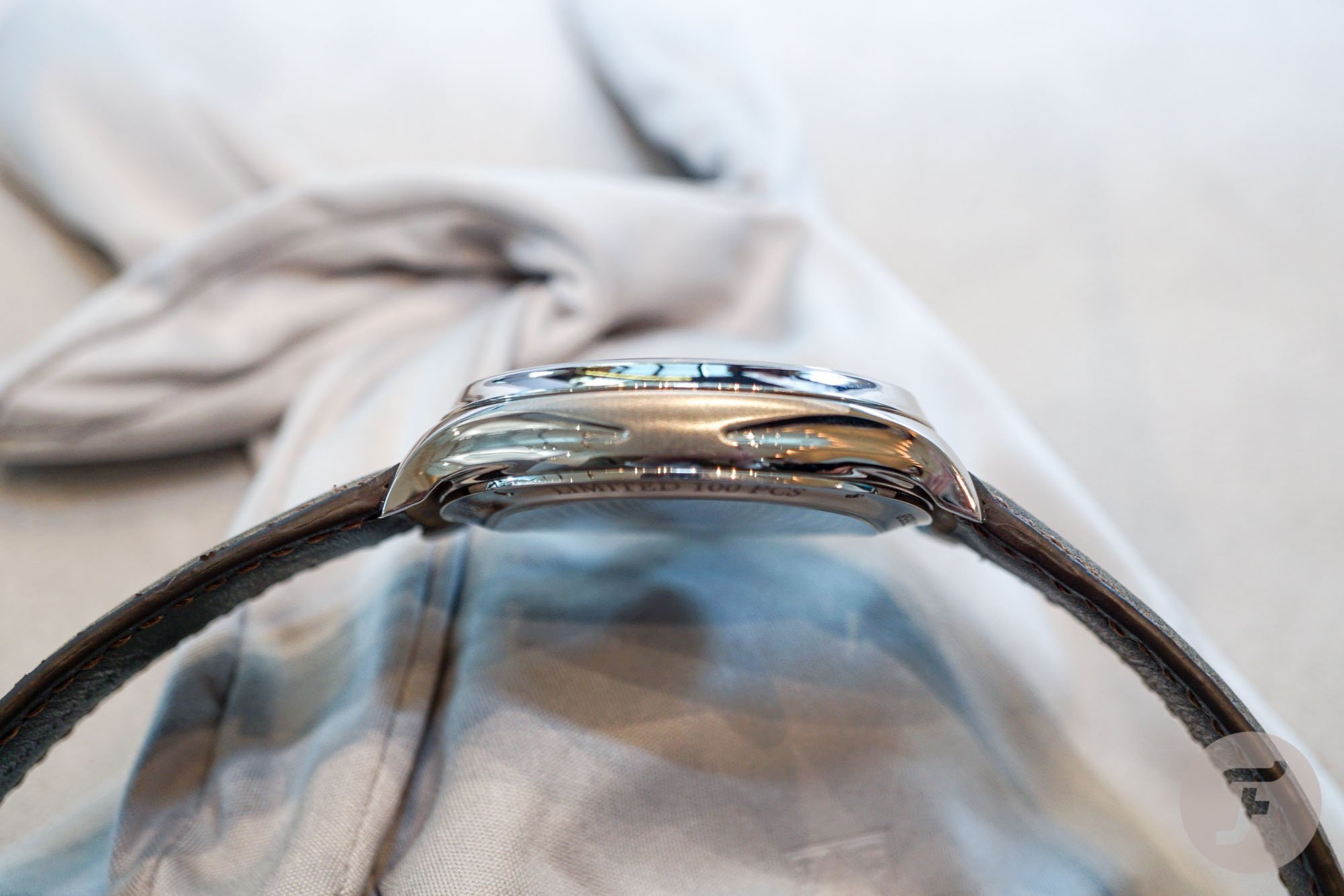 Hand-stitched alligator leather strap completes the look of the new Moser Endeavour Flying Hours timepieces. Black alligator for the green watch and dark grey for the fume/blue dial version. 18K white gold pin buckle is on both straps with the Moser logo on them. Both green and fumé/blue Endeavour Flying Hours are limited to 100 pieces each. You can see the limited-edition number on the case back. As far as price is concerned, we are looking at 35.000 CHF. That is a lot of money for most of us. However, if you consider that you are getting a white gold Haute Horlogerie timepiece with a completely in-house made (developed, manufactured, assembled) movement that puts the watch into a different perspective. Not to mention that albeit is a time-only piece, the planetary display of hours and minutes is not you see every day.