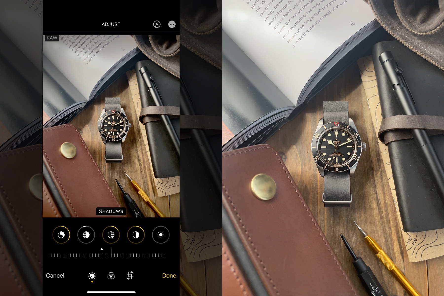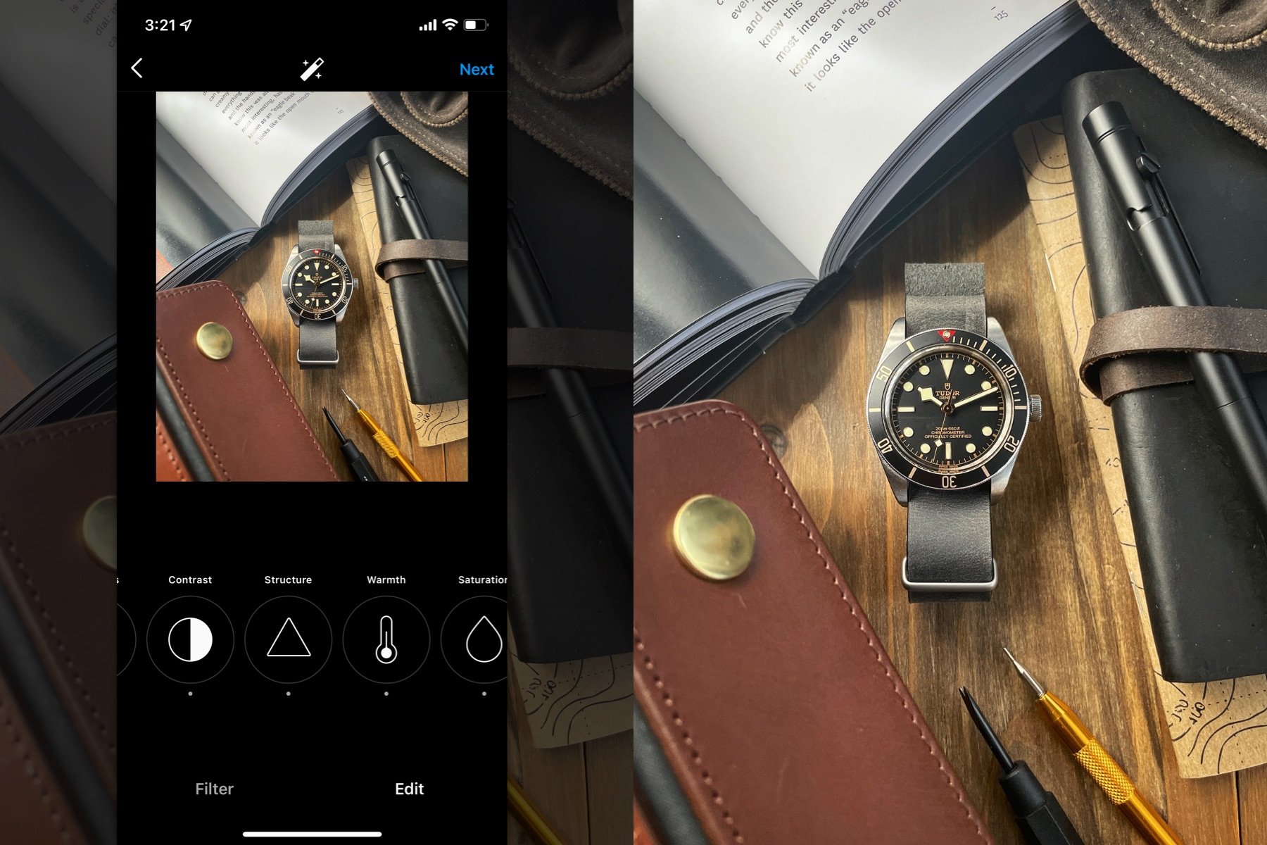 By now, you’ve nailed the lighting, composition, and staging of your watch shot. A final touch to accelerate your shot into photographic fame is to apply some editing. Post-processing, as people sometimes call it, is a craft all its own. And like the rest of the photography process, deciding what is “enough” is subjective to the creator. My best advice is to lead with your eyes, going with what looks and feels right to you.