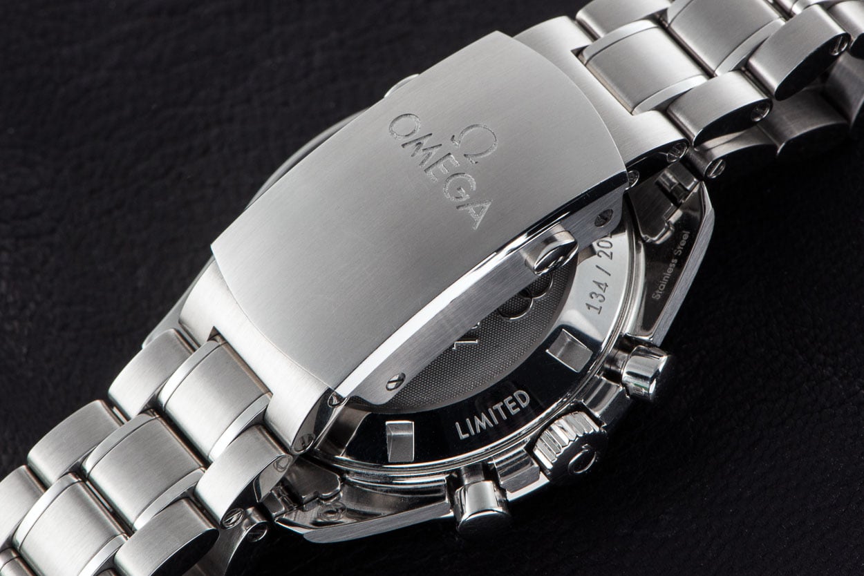 The sapphire crystal and bracelet make the Omega Speedmaster Rising Sun having quite an impressive weight. I think it must be the heaviest Speedmaster ‘Moonwatch’ model I have in my collection (my 18-carat gold Moonwatch has Hesalite front crystal and a sapphire caseback). The bracelet has the screwed links and clasp that can easily extend by pushing a button on the inside. This way, you don’t have to resize using tools.