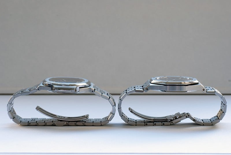 With respect to the height of the watch, there isn’t much difference. The Royal Oak measures 8 mm in height and the Nautilus measures 8.6mm in height.