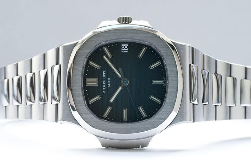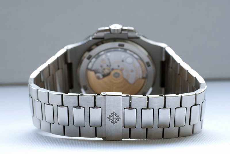 The dial of the Nautilus is a real piece of art. The colors are mesmerizing when the angle of the light changes on the dial with its horizontal embossed bars. It might change from dark blue to green and it looks if the center part of the dial is more bright than the rest of it. There is also a white dial version of the 5711/1A, introduced a few years ago.