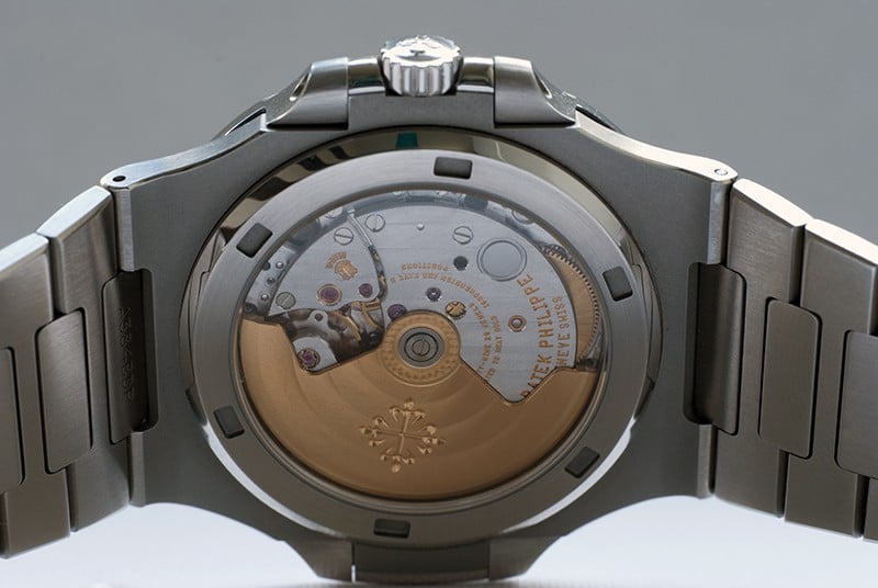 In 2006, 30 years after the initial introduction of the Nautilus ‘Jumbo’, Patek Philippe introduced the 5711/1A. A worthy successor of the original ‘Jumbo’ with its 43mm and hour, minute and seconds hand only dial. The movement inside is Patek’s caliber 324 SC, their own manufacture movement.