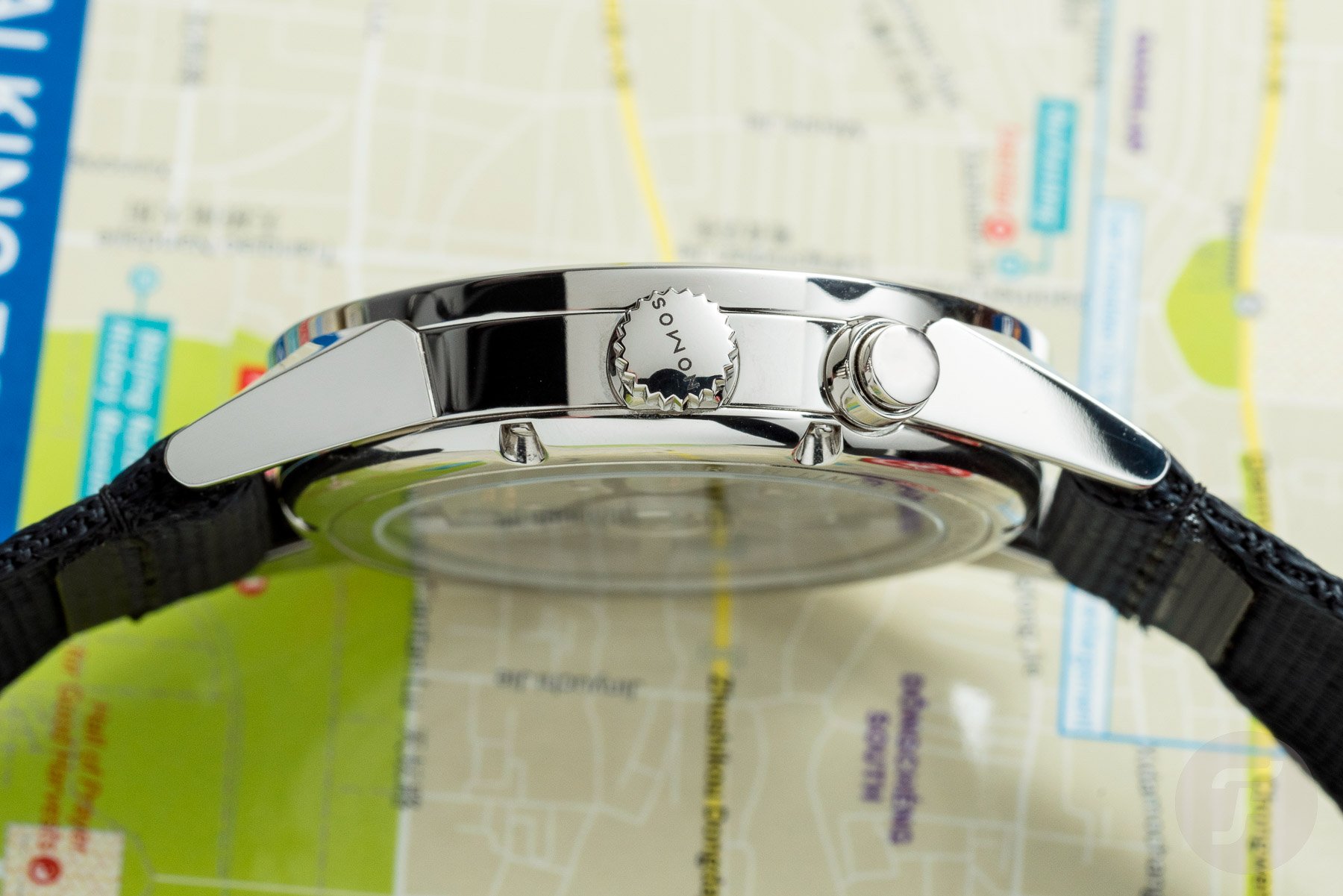 This whole “Blue Panda” execution is housed in the Weltzeit case created by the late Hannes Wettstein. The lauded Swiss designer was known for mixing industrial lines with organic curves. The Weltzeit’s deceptively simplistic form is, in fact, NOMOS’s most complicated case construction. The lugs are individually finished before being attached to the body. It is an old-school and costly way of making a case. To smooth out the solder joints between the case and the lugs as if it were a one-piece construction requires intensive manual labor. The result is outstanding and clear to see. The perfect cleft seams give the impression of “suspended” lugs from a top view.