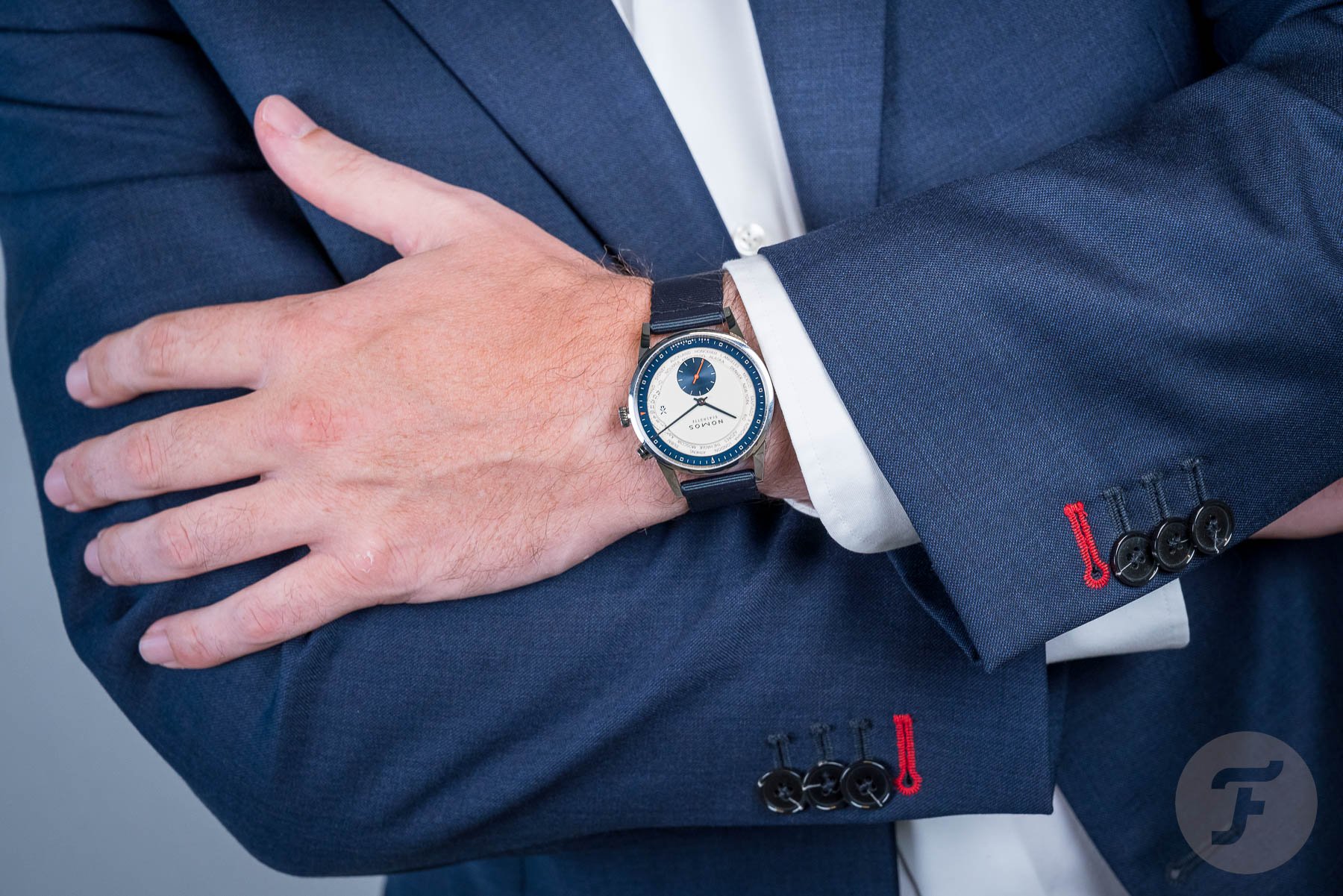 And with that said, the stainless steel case measures 49.4mm lug to lug, 39.9mm wide, and 10.9mm tall. On the surround of the case back, it has an engraving with the watch’s limitation number (x/100) and an inscription of “The Hague Blue For Fratello”. The lugs sit 20mm apart and hold the new navy-blue woven strap for the “Blue Panda” model. This is the first time that NOMOS has paired a Weltzeit with a fabric strap. I believe it makes the watch even more versatile for business and casual settings and keeps it comfortable on the wrist while traveling through time zones.