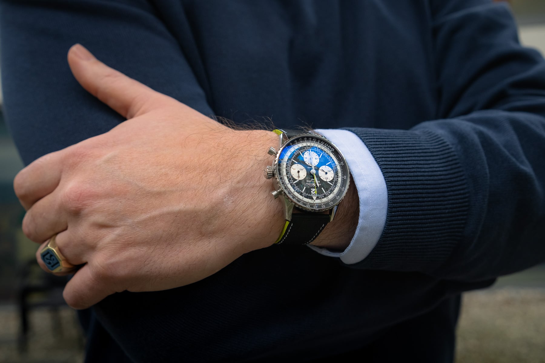 Nacho is also wearing a titanium Breitling today, but in this case, it’s his Aerospace F65362. One of the sketchiest Breitlings out there, it keeps him coming back. If you’re looking for a lightweight, multifunctional watch with a lot of street cred, you should look no further than the classic Aerospace models from the early 2000s.