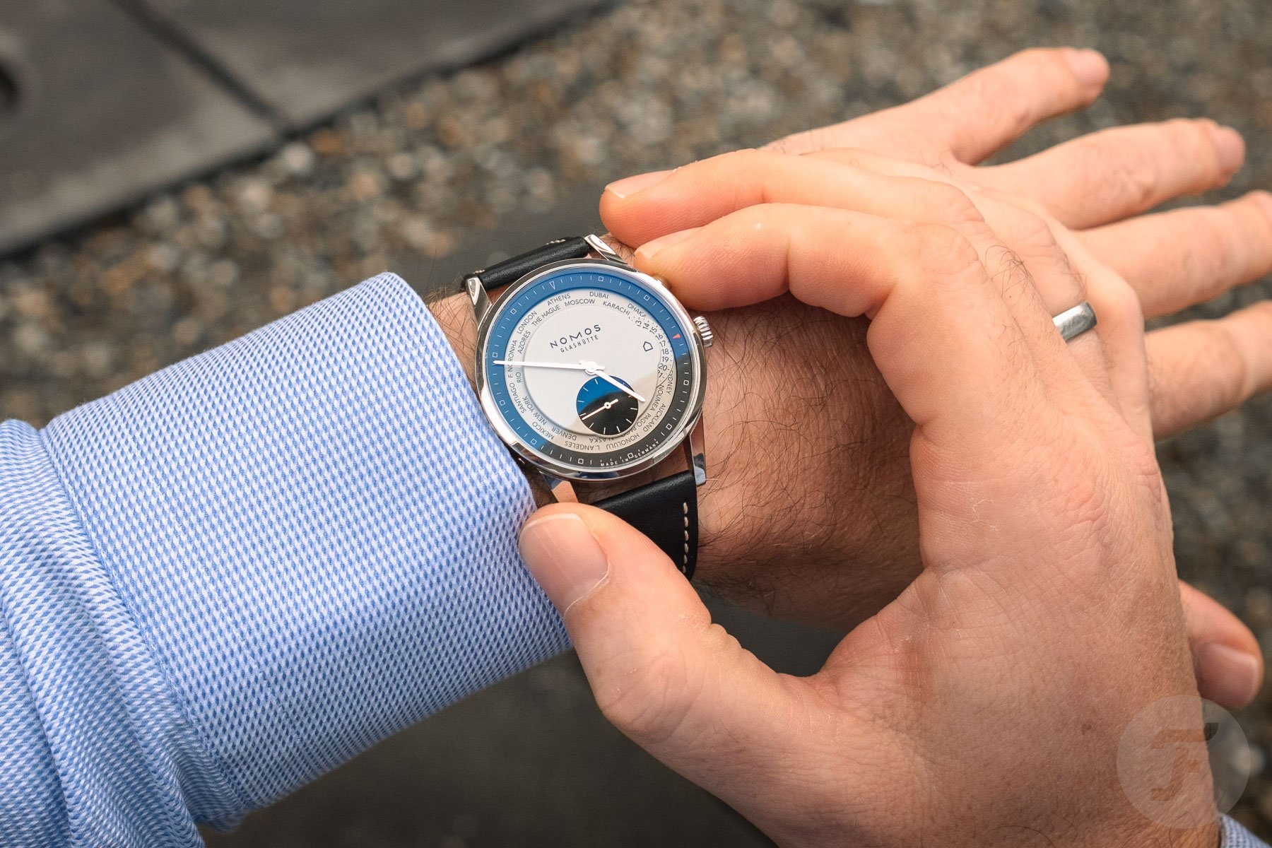 RJ kicks off this all-Nomos wrist check with his Zürich Weltzeit “The Hague” Fratello LE from 2021. This was the first panda-dial version of Nomos’s signature Weltzeit model. It included some subtle details, such as the Central European time zone being marked “The Hague” (Fratello HQ’s hometown) instead of the usual “Berlin” and an orange pointer for the 24-hour disk.